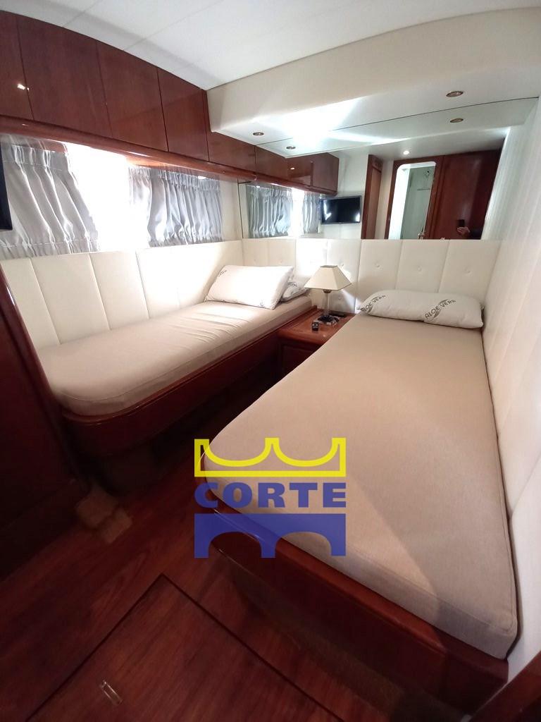 New air conditioning system, new instrumentation on the bridge, new engine control levers, new fuel tank and cleaning of the others, 2023 batteries, underwater lights, new seals and axle bushings, new exhaust mufflers, new inverter, new electrical system panel, new charger, new cushions, awnings, new window covers, 2 new cabin chillers, new appliances, etc