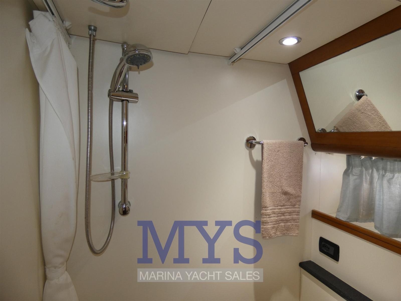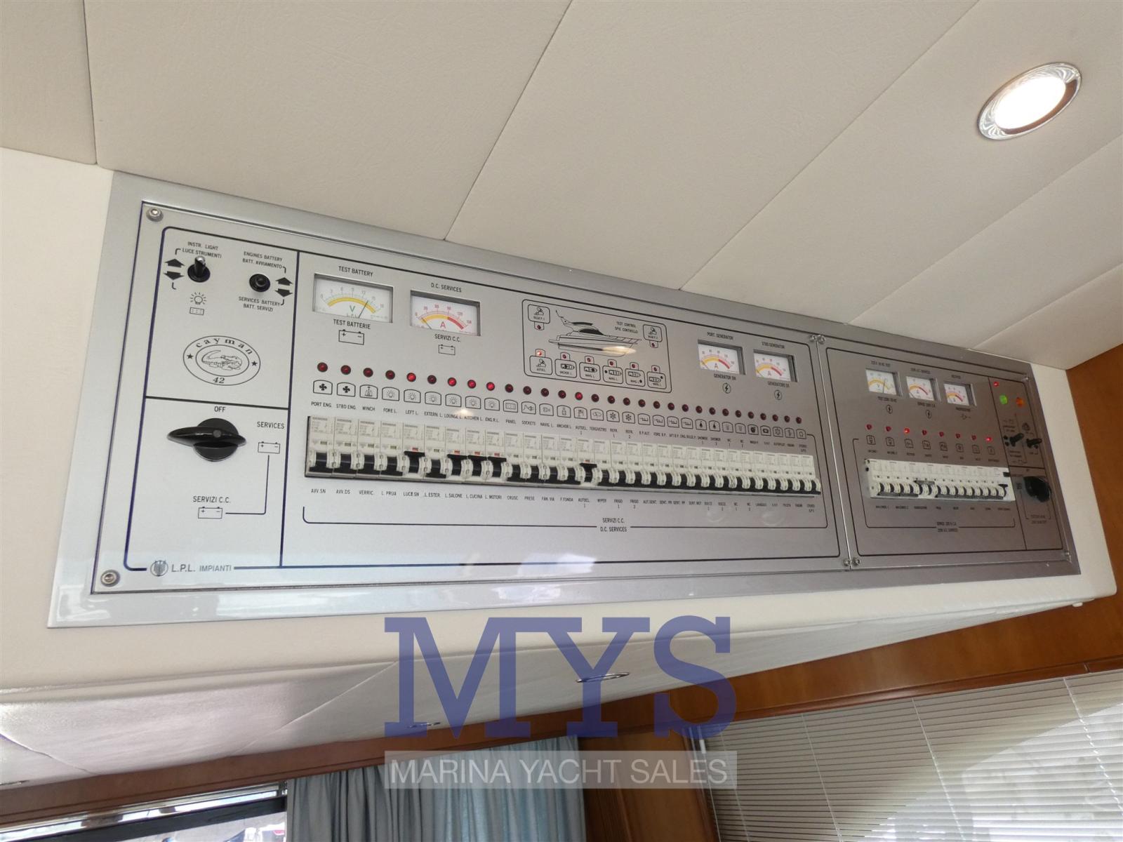 Fume/Gas Detector, Engine Alarm, Bilge Alarm, Water pressure pump, Special Colour, Deck Shower, Hydraulic Flaps, Fire Extinguishing System, Washbasin in the cockpit, Courtesy Lights, Gangway, Platform, Automatic Bilge Pump, Manual Bilge Pump, Teak deck, Entry door, Teak Cockpit, Shorepower connector, Rollbar, Electric Windlass, swimming ladder, Living Room Foldable Table, Horn.