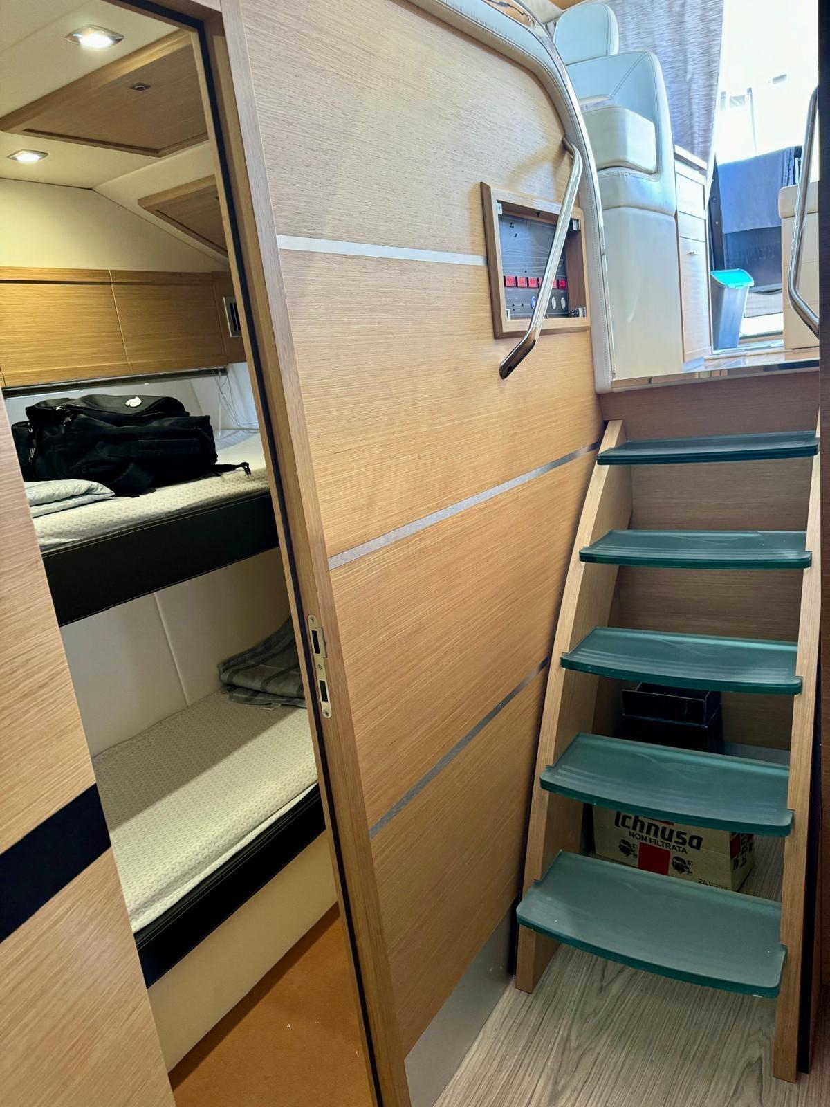 Water pressure pump, Deck Shower, Stern Thruster (Lewmar), Bow Thruster (Lewmar), Electric Flaps, Underwater lights, Gangway (Opacmare), Shorepower connector, Electric Windlass, swimming ladder.