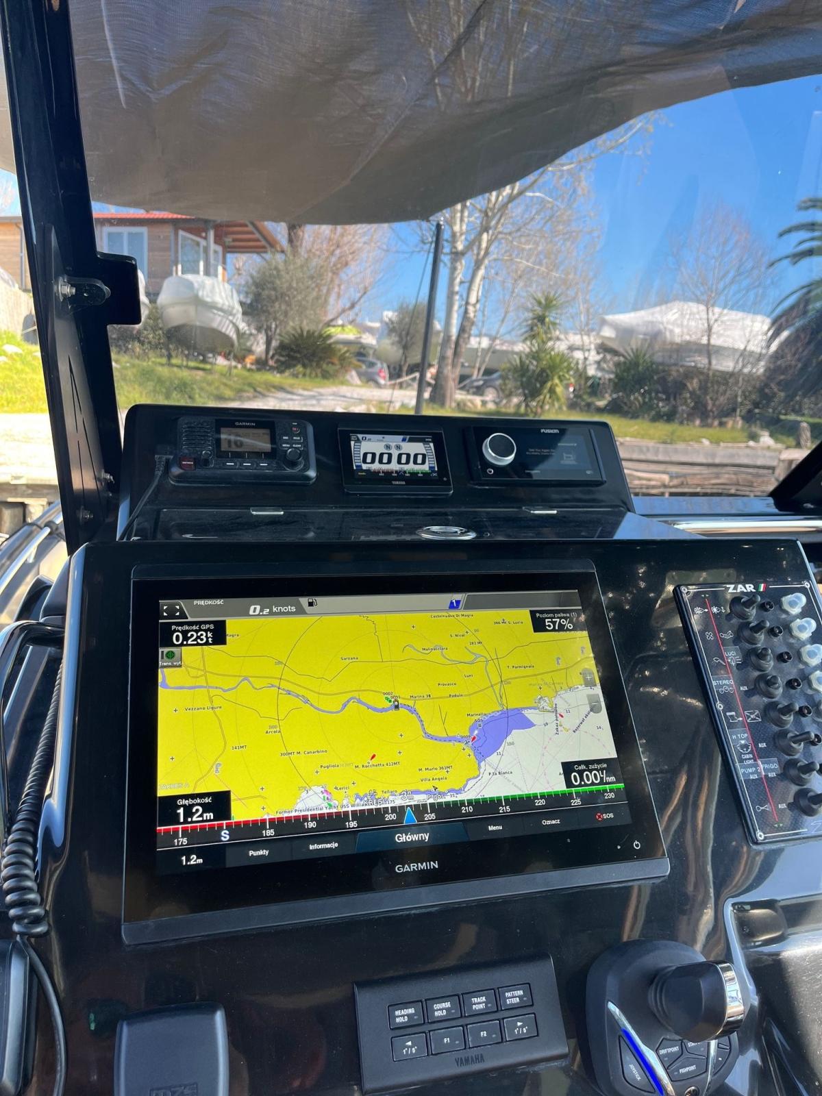 On-Board Computer, Joystick, Chartplotter (Garmin), Radar (Garmin).