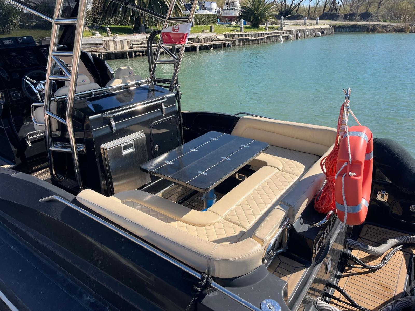 Water pressure pump, Deck Shower, Automatic Bilge Pump, Shorepower connector, swimming ladder, cockpit table (Elettrico), T-Top.