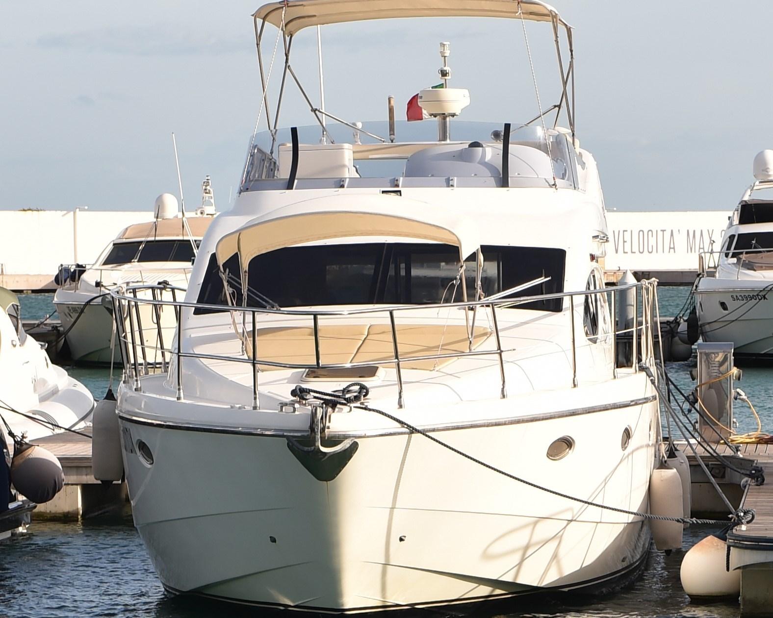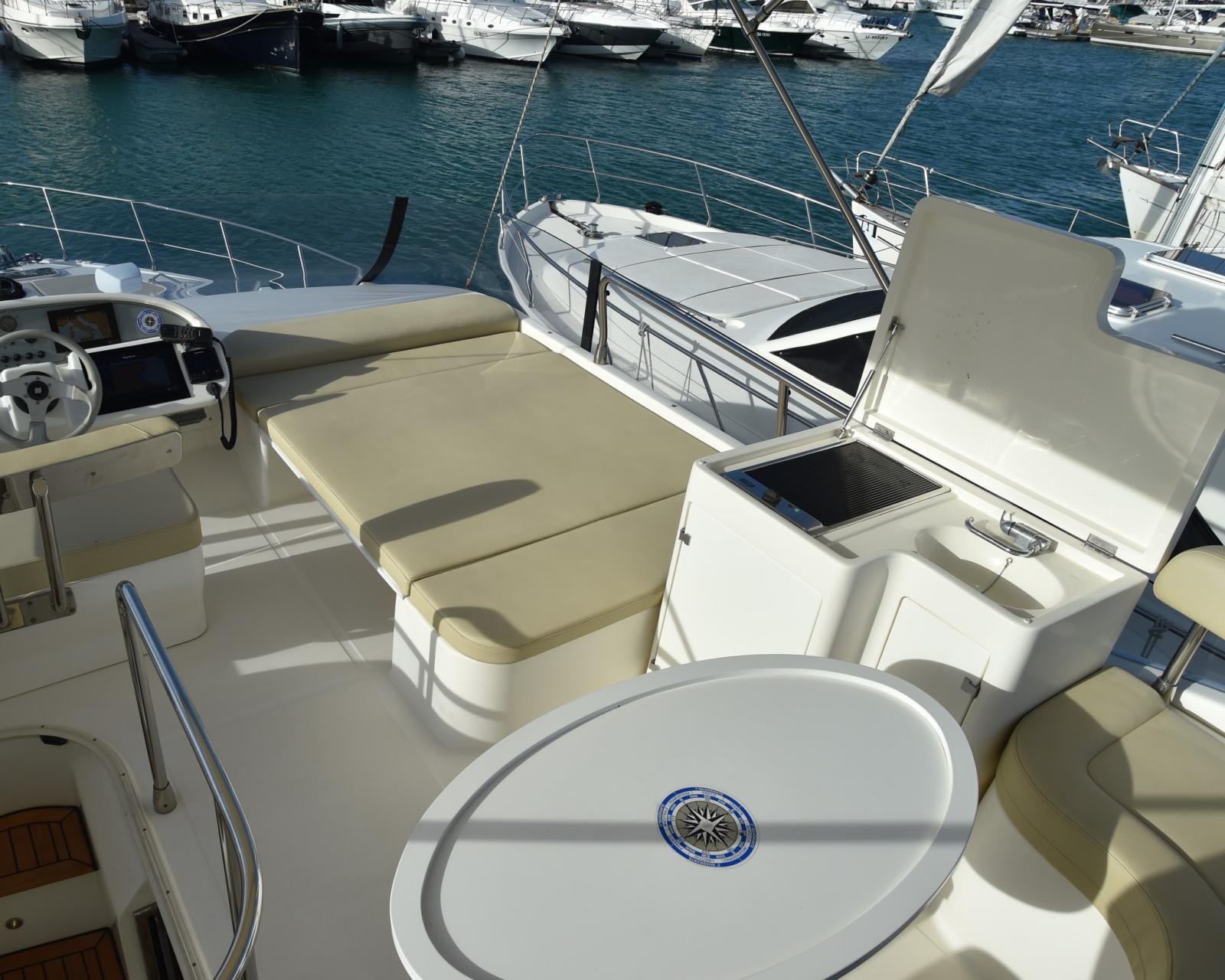 Water pressure pump, 5 Batteries, Deck Shower, Twin Steering, Directional Spotlight, Gangway (INOX BESENZONI), Automatic Bilge Pump, Entry door, Teak Cockpit, Shorepower connector, Water harbor connector system, Electric Windlass, swimming ladder.