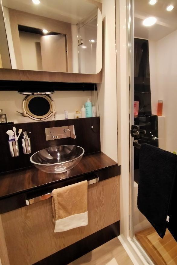 BBQ/Grill, Warm Water System, Inverter Air Conditioning, Waste Water Plant, Interior wooden floor, 12V Outlets, 220V Outlets, Video camera, Termovision, Electric Toilet.