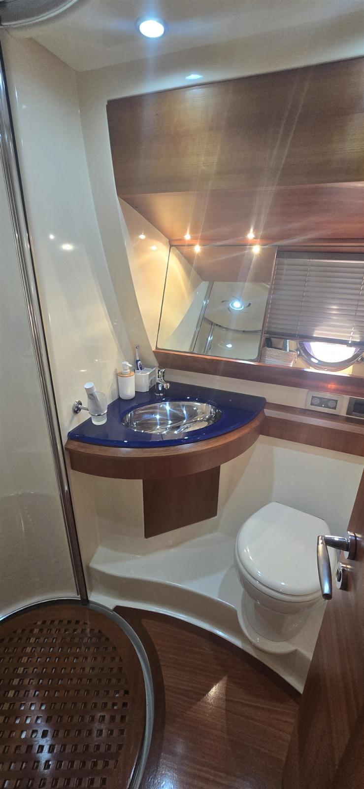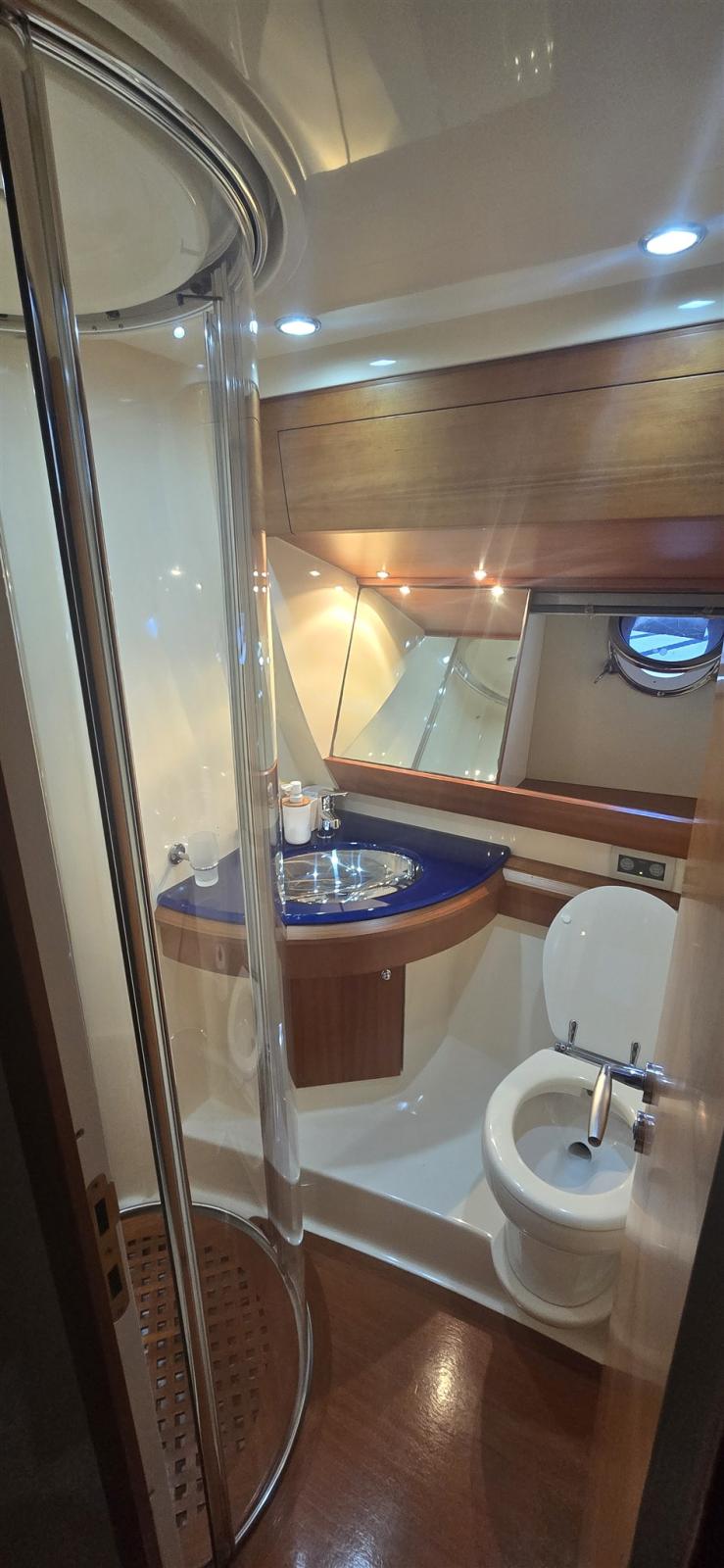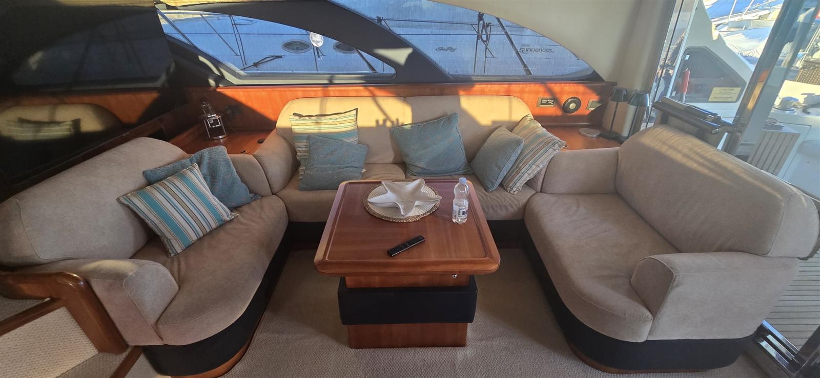 Engine Alarm, Bilge Alarm, Water pressure pump, Deck Shower, Twin Steering, Hydraulic Flaps (N°2), Fire Extinguishing System, Flaps Indicators, Gangway, Platform, Automatic Bilge Pump, Teak Cockpit, Shorepower connector, Water harbor connector system, Voltage Rectifier, Rollbar, Electric Windlass, swimming ladder, Saddles for tender, Tender, Horn, Stern Winches.