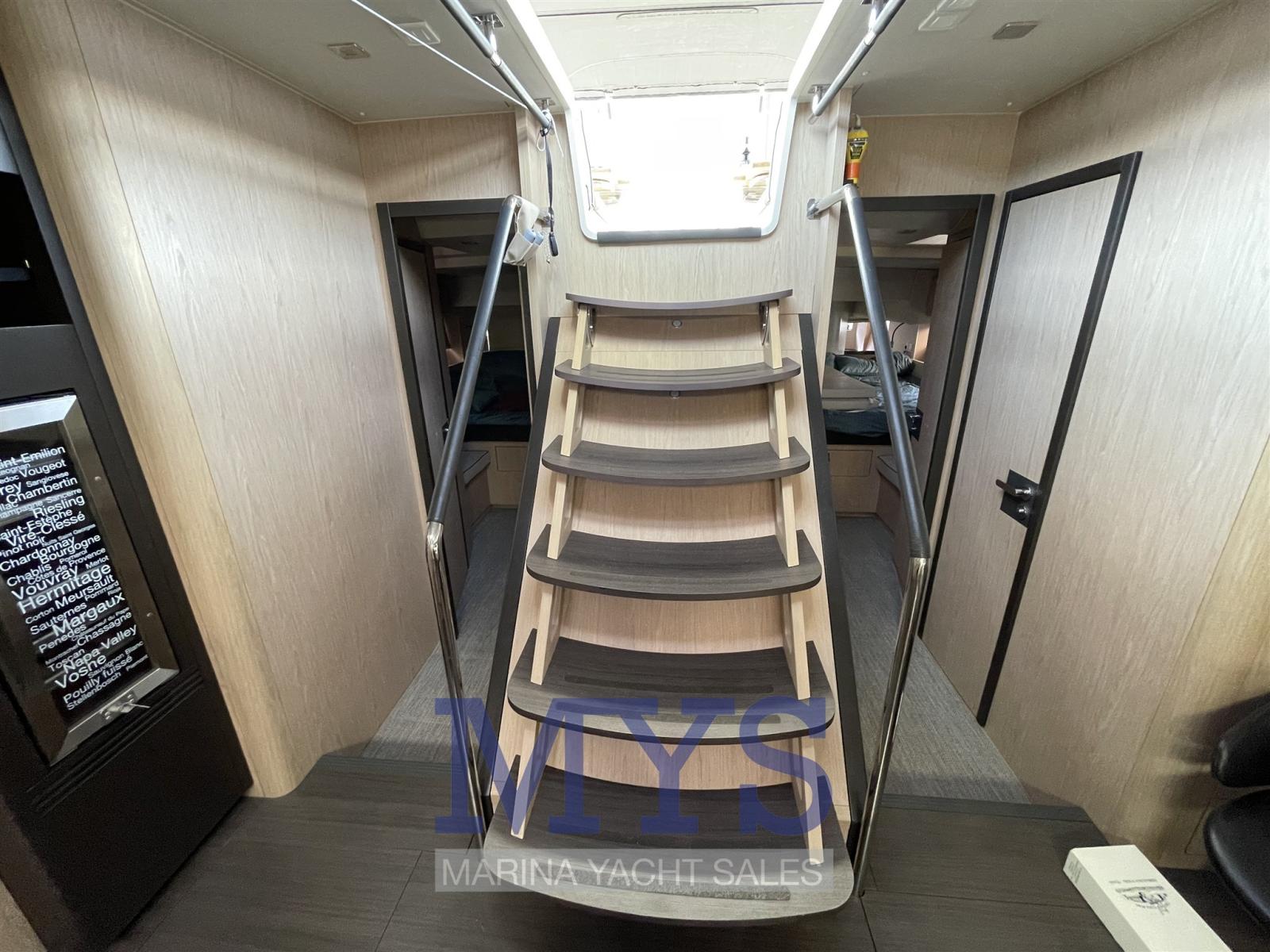 - Despite its size, it is designed for use in a small crew thanks to electric winches, ergonomic steering systems and bow/stern thrusters.