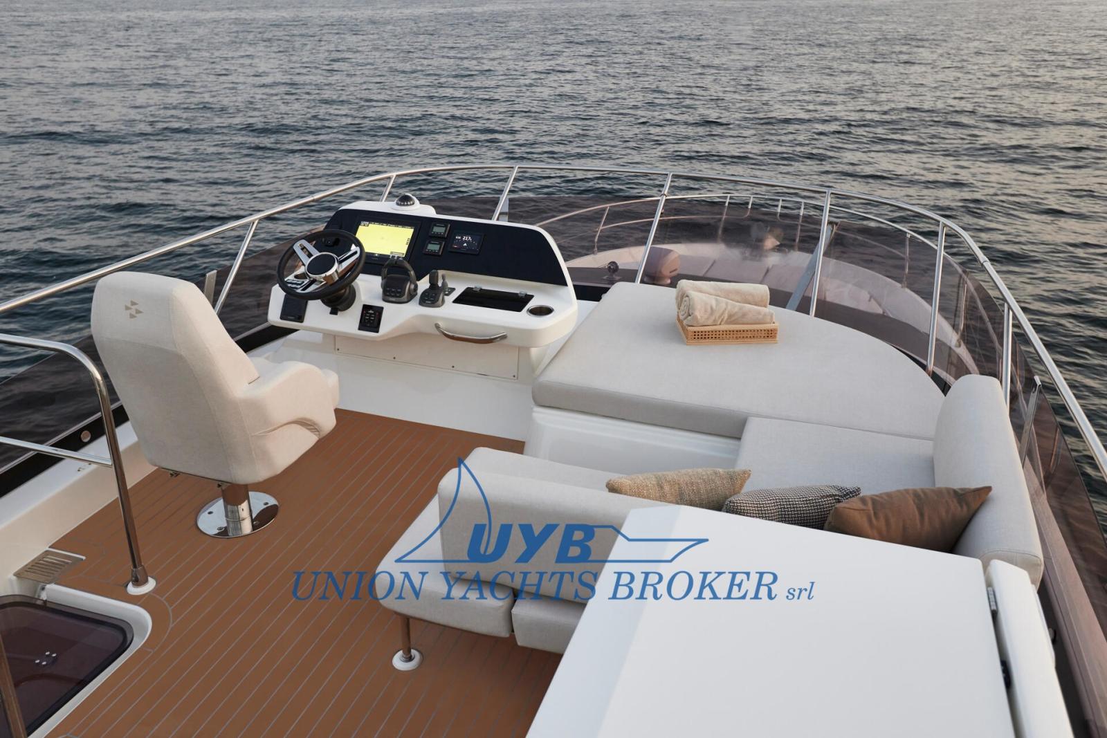 Engine Alarm, Bilge Alarm, Alternator, Water pressure pump, Deck Shower, Twin Steering, Electric Flaps, Anchor Chain Washdown, Underwater lights, Gangway (IDRAULICA), Platform (IDRAULICA), Automatic Bilge Pump, Entry door, Side door, Teak Cockpit, Shorepower connector, Water harbor connector system, Voltage Rectifier, Electric Windlass, swimming ladder, cockpit table (CON PROLUNGHE E PIEDI TELESCOPICI), Stern Winches.
