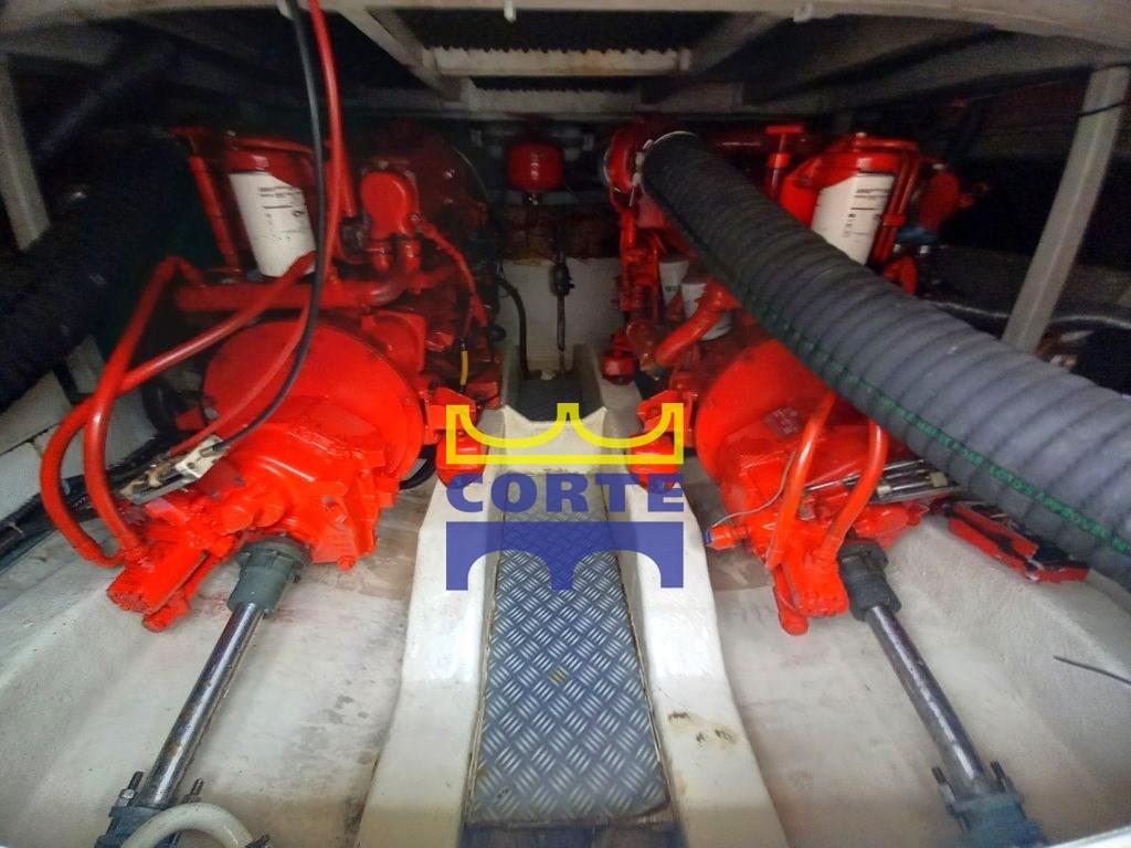 Engine Alarm, Bilge Alarm, Water pressure pump, Deck Shower, Twin Steering, Hydraulic Flaps, Tender Crane (passerella), Gangway (elettroidraulica), Platform (di poppa allungata), Automatic Bilge Pump, Entry door, Teak Cockpit, Shorepower connector, Water harbor connector system, Electric Windlass, swimming ladder, Bow Winches.