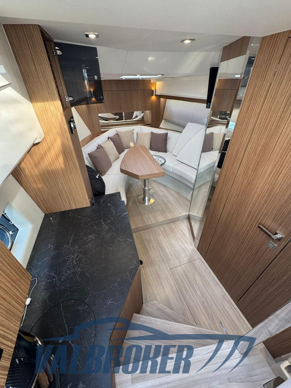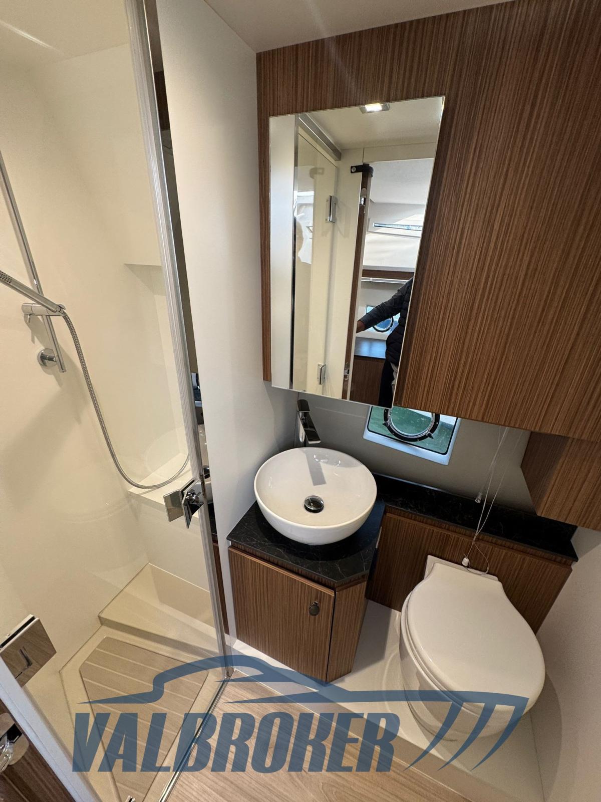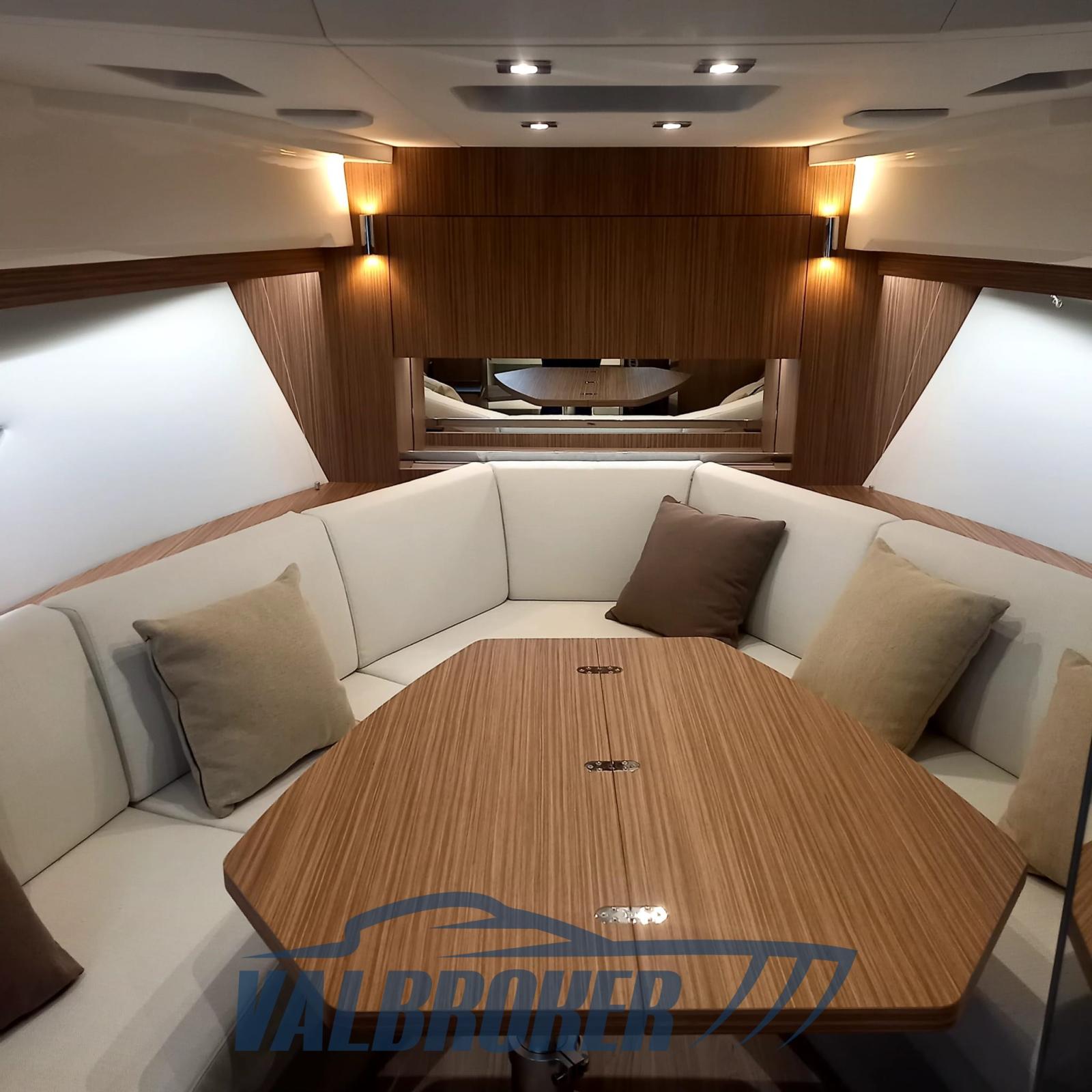 Dashboard with carbon effect, trim correctors Zipwake Dynamic Trim System, generator preparation, manhole that can be opened at the bow, windshield closure on 3 sides, cushion cover, cushion kit for transformation dinette bow and stern