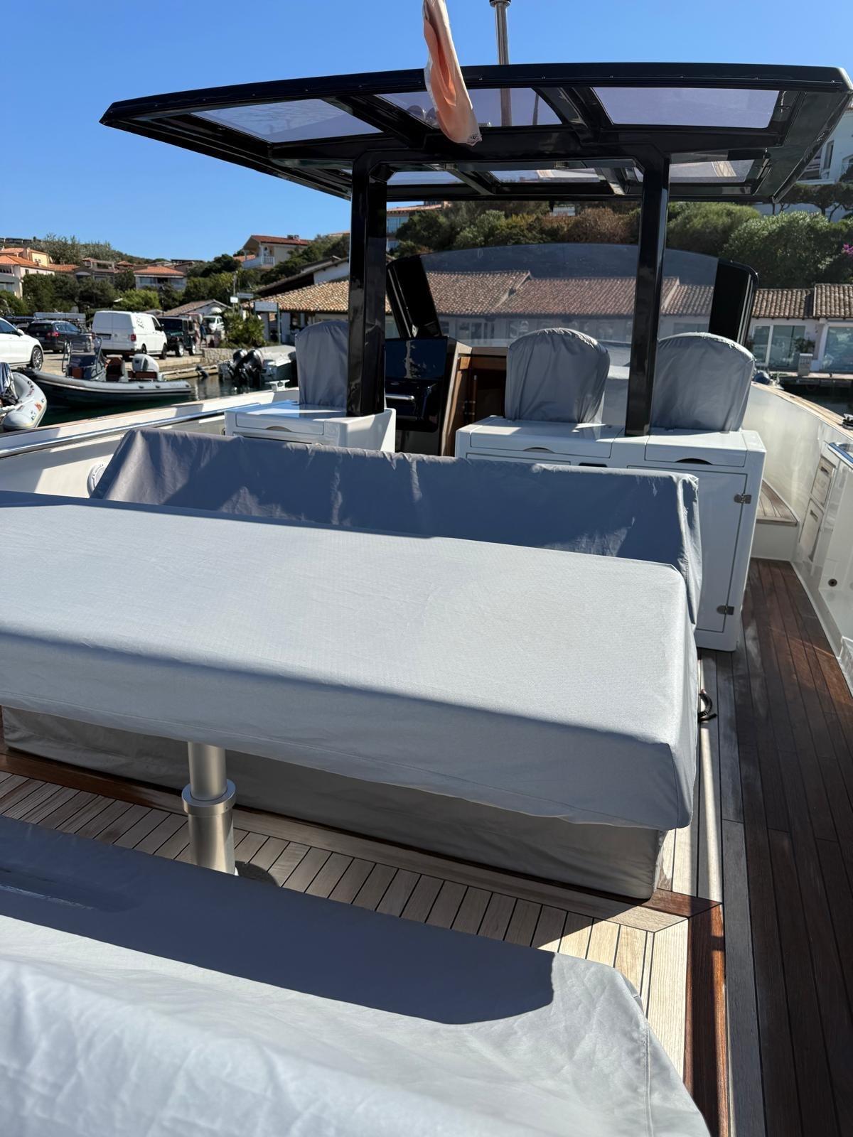 Engine Alarm, Bilge Alarm, Anchor (10kg + 50m SS chain with hydraulic arm system), Water pressure pump, Batteries (Nuove 2024), 6 Folding cleats, Teak Side Decks, Battery charger (Mastervolt 2024), Shore power cable, Deck Shower, Electric Flaps (Volvo trim tabs), Fire Extinguishing System (firebuoy), Flaps Indicators, Washbasin in the cockpit, Courtesy Lights, Platform (extended like FJORD 42), 2 Automatic Bilge Pump, Teak Cockpit, Shorepower connector, Electric Windlass, swimming ladder, cockpit table, 2 guard rails with gates, Horn, T-Top.