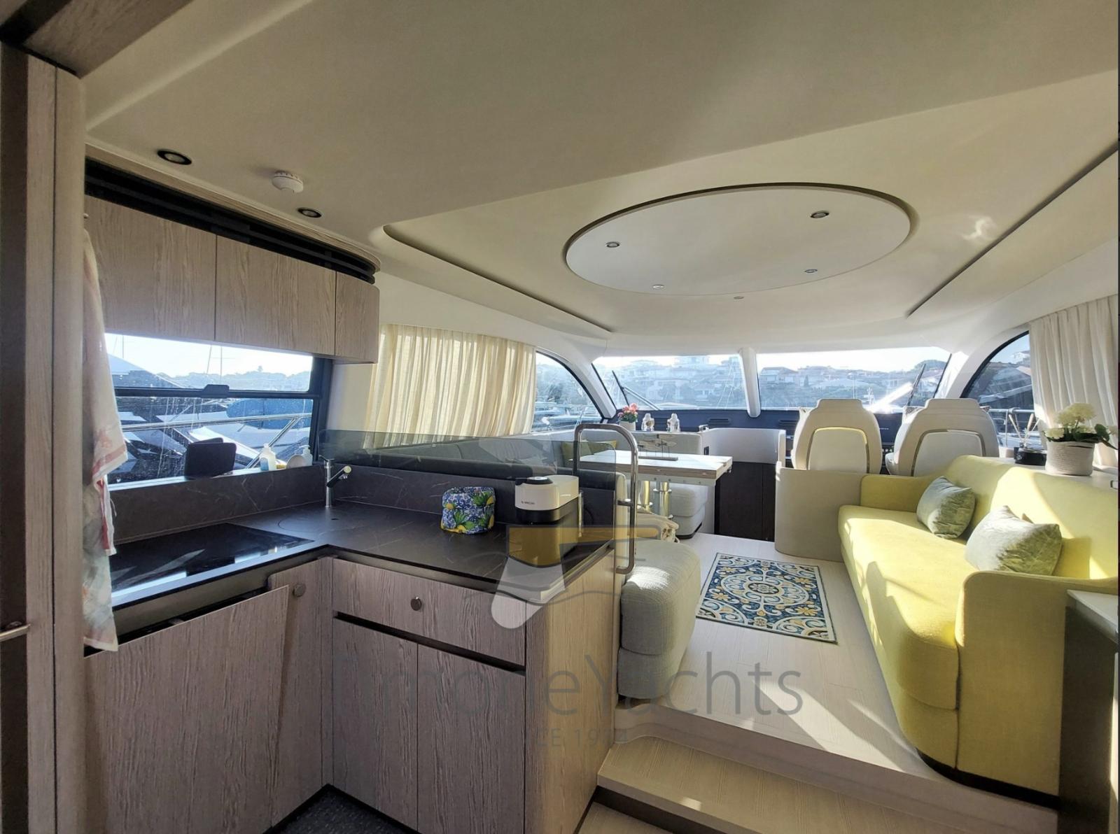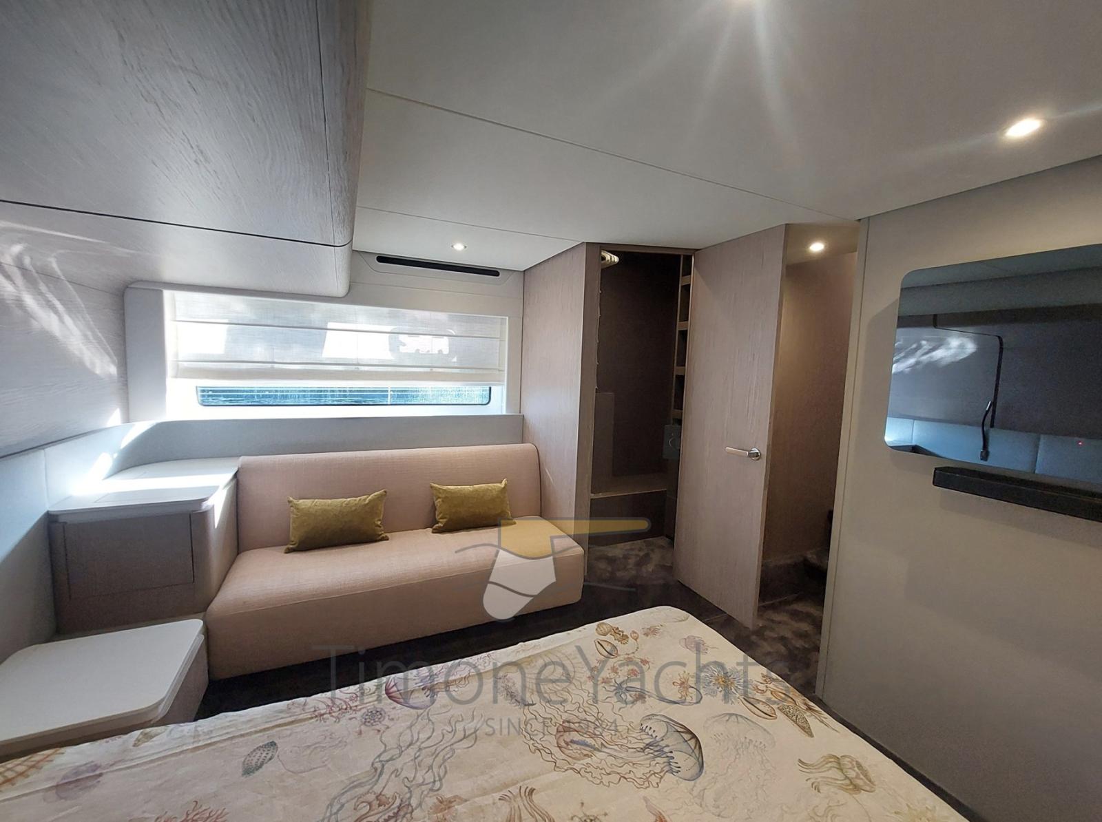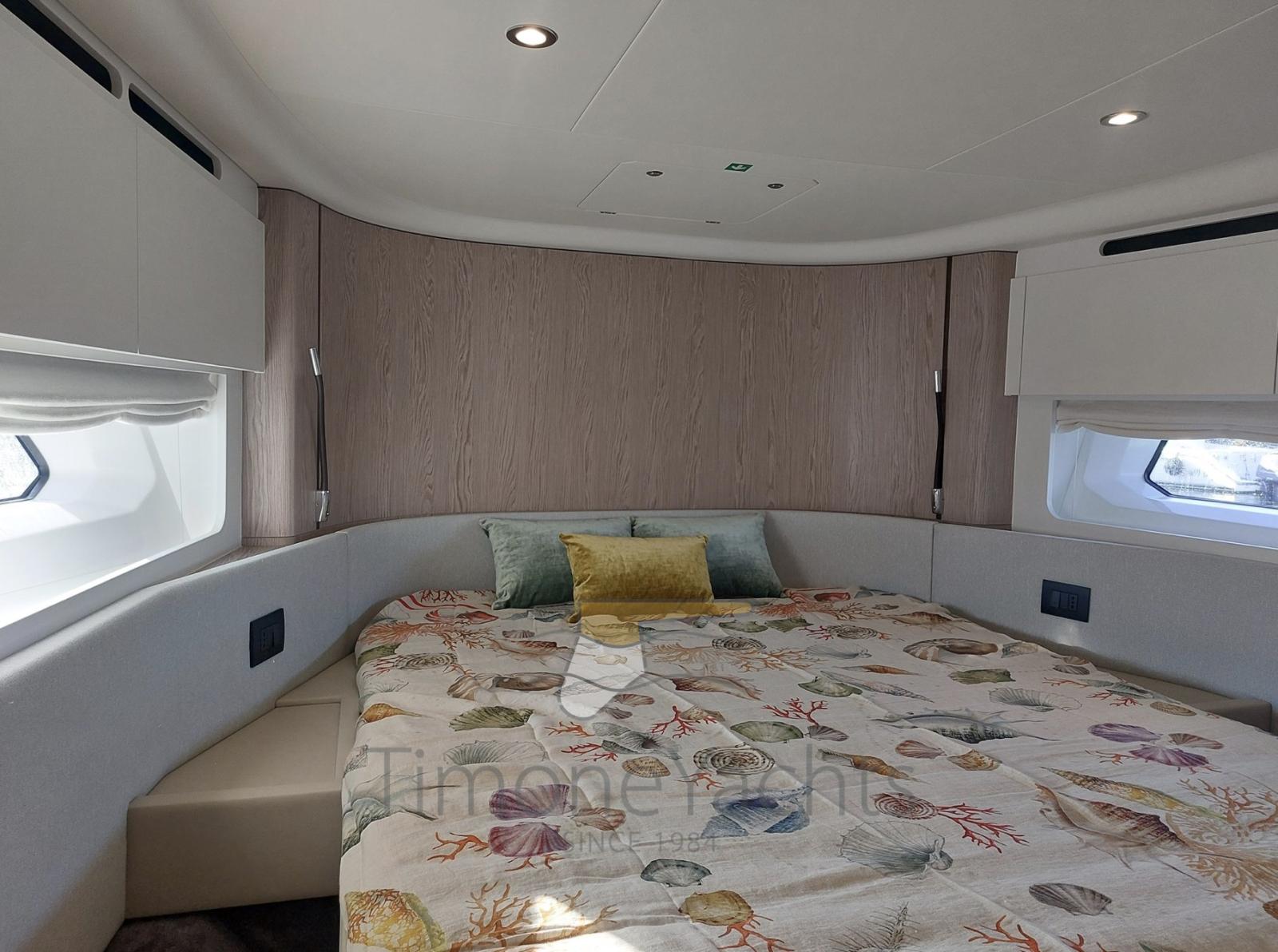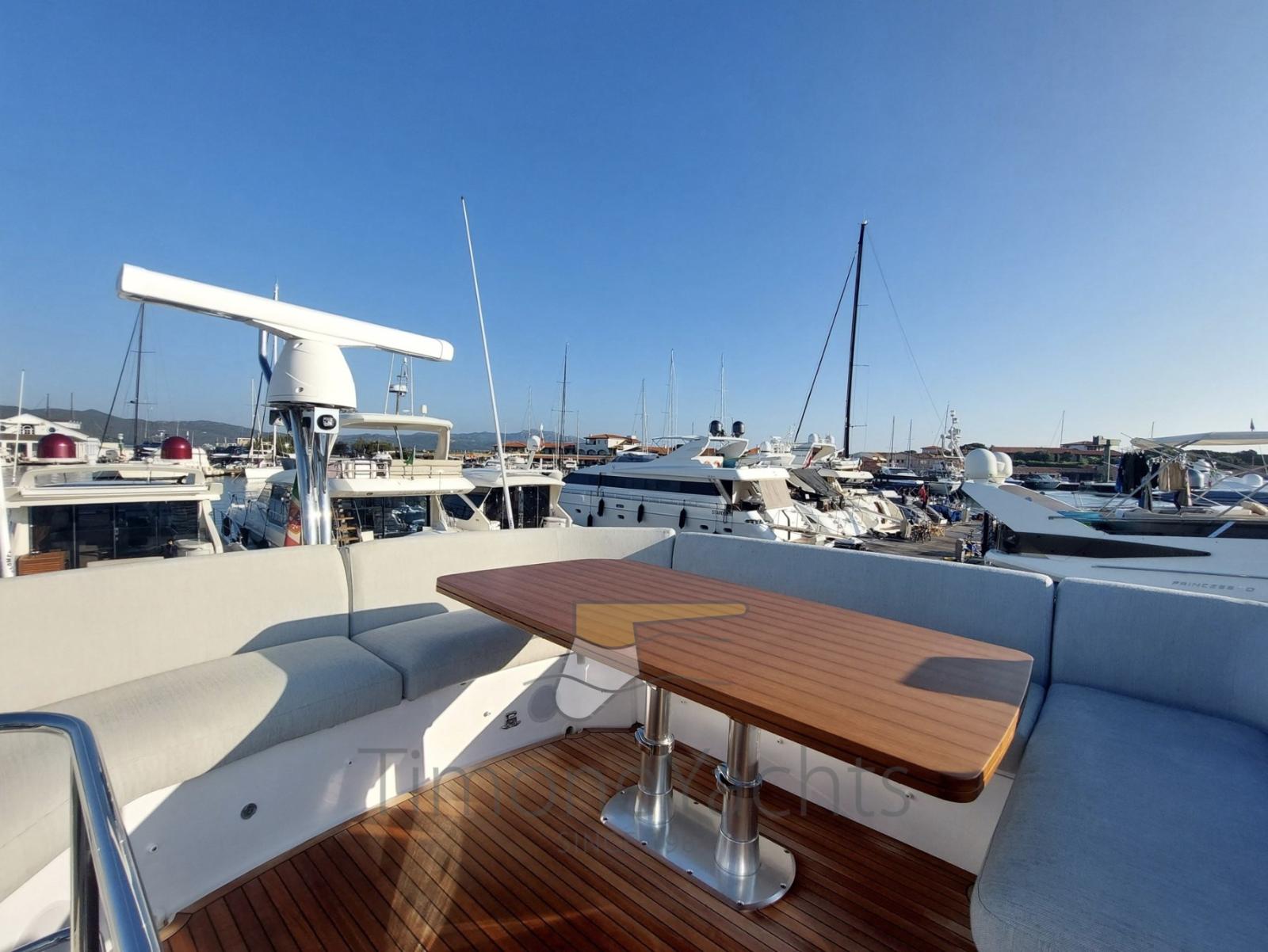 Fume/Gas Detector, Engine Alarm, 4 Bilge Alarm, Alternator, 2 Water pressure pump, Auto-Trim, Teak Side Decks, Shore power cable, Special Colour (Deep Blue), Guard rail, Deck Shower, Twin Steering, Headlights fixed on the stem, Electric Flaps, Flaps Indicators, Anchor Chain Washdown, Courtesy Lights, Underwater lights, Outboard engine for tender, Fenders, Gangway, Platform, Automatic Bilge Pump, Manual Bilge Pump, Teak deck, Entry door, Teak Cockpit, Shorepower connector, Water harbor connector system, Electric Windlass, swimming ladder, Saddles for tender, cockpit table, Living Room Foldable Table, Tender (Submarine + Yamaha 20hp), guard rails with gates, Horn, Stern Winches, Bow Winches.