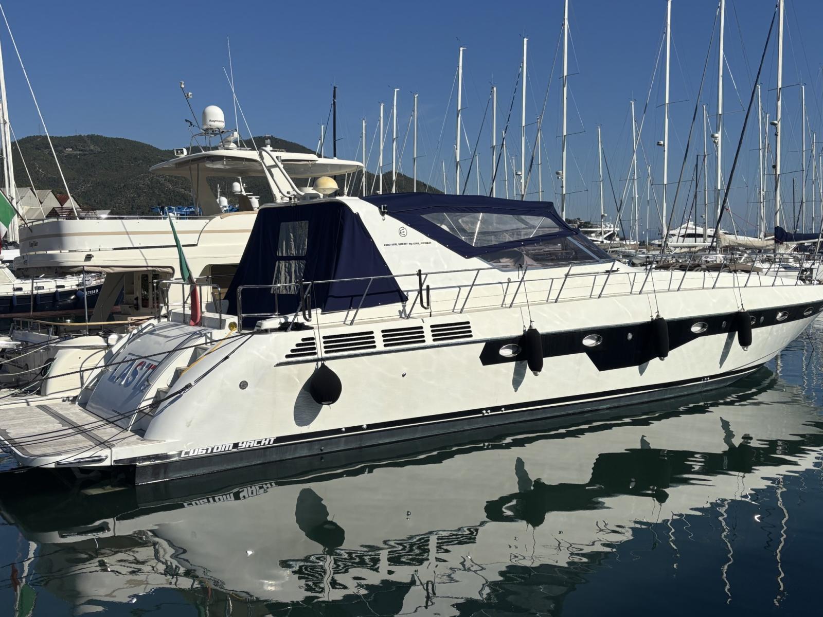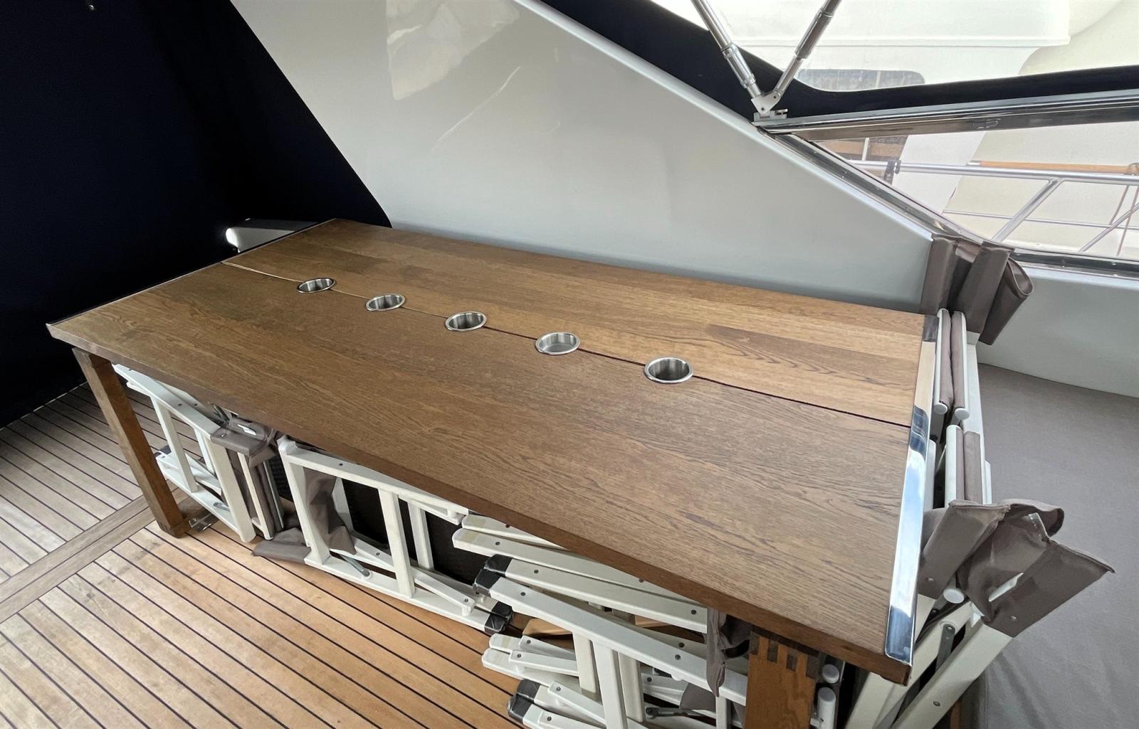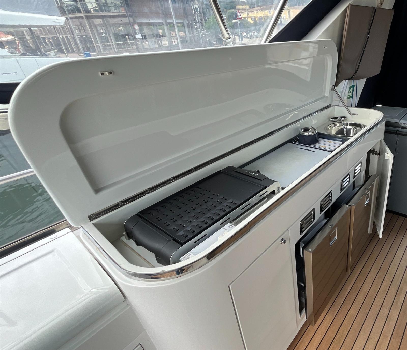 Radar, Garmin 12" touch GPS new 2024, vhf, echo sounder, autopilot, retractable hydraulic gangway, sinkable stern bridge, C/F air conditioning, sunbathing cushions, complete awnings, cockpit bar cabinet, bow and stern thruster, tender garage