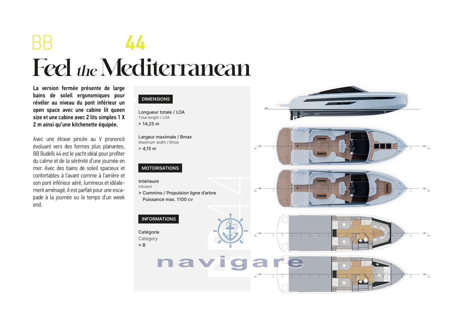 STABILITY: Thanks to its exceptional width, the hull of the BB44 guarantees optimal stability, ensuring unparalleled sailing comfort.