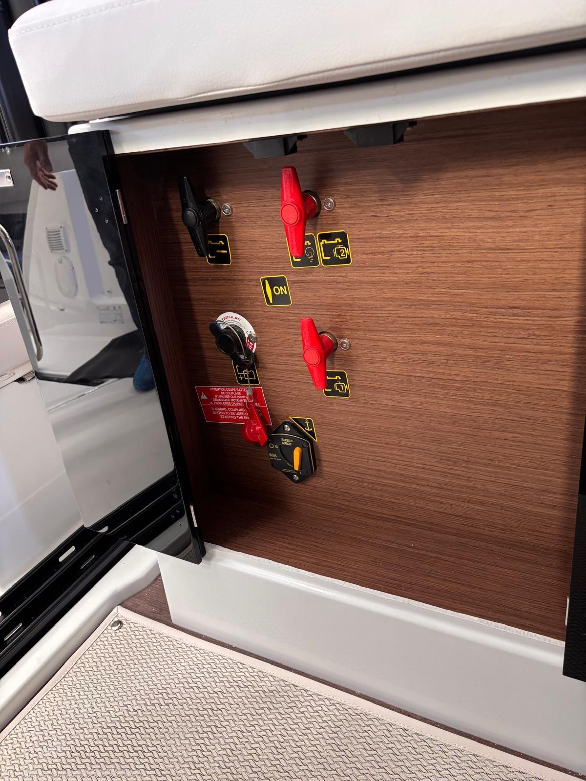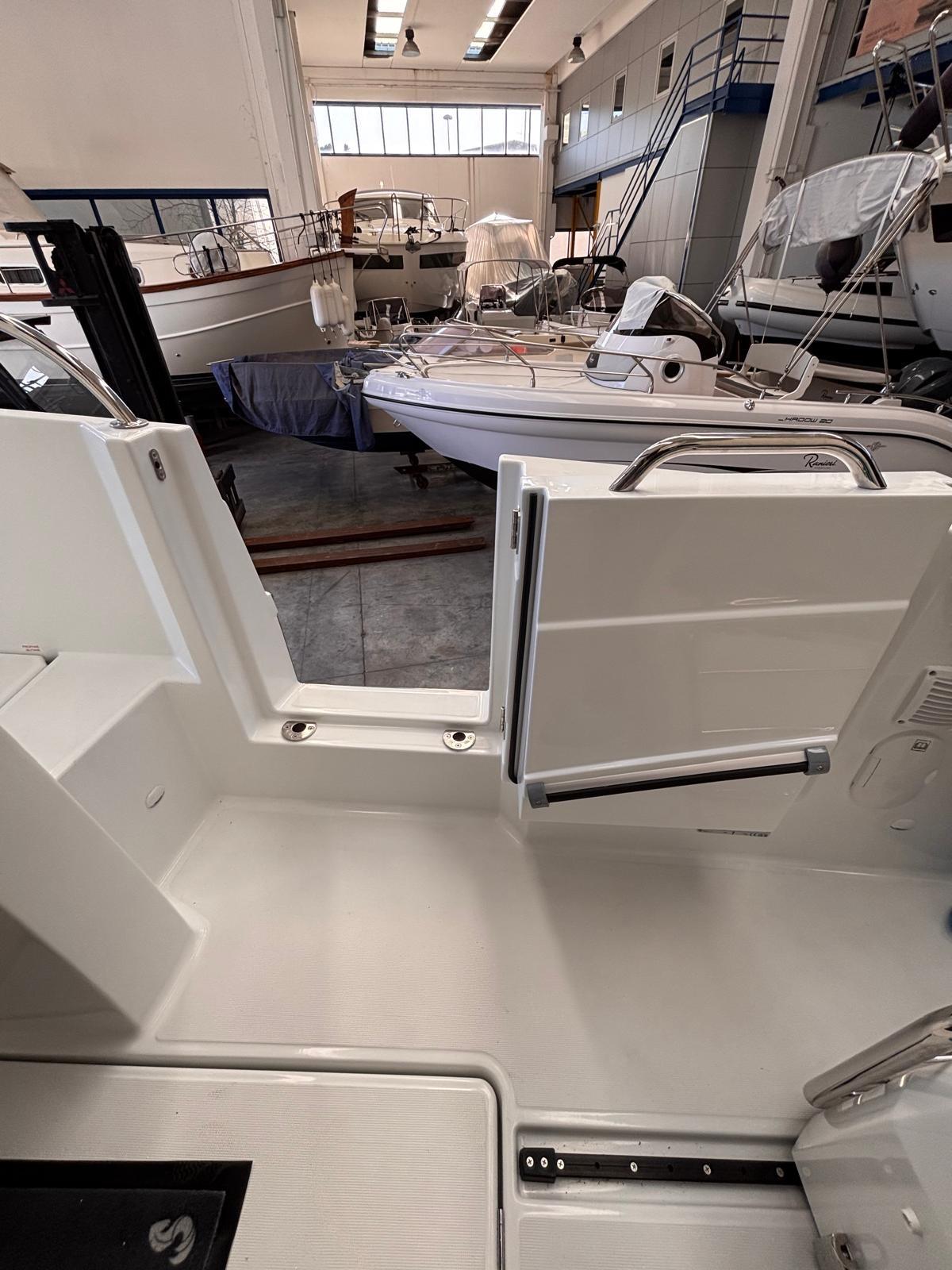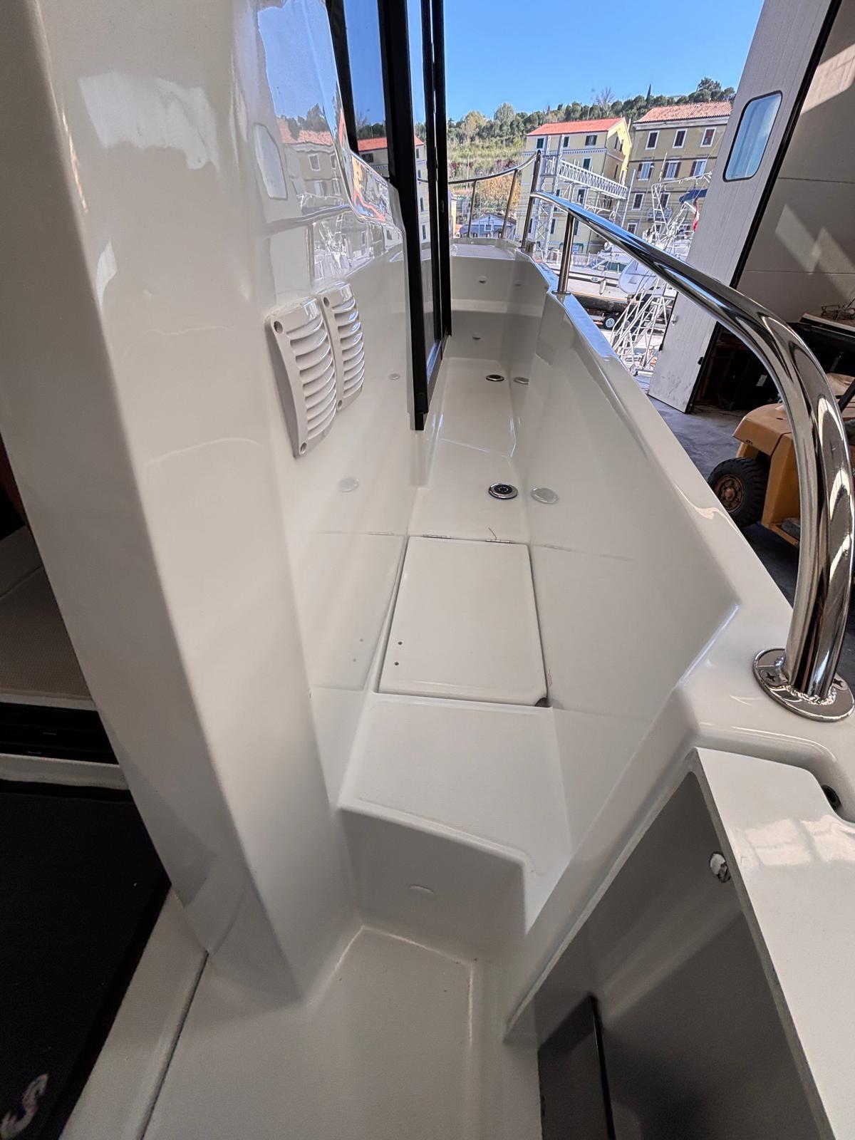 Fume/Gas Detector, Engine Alarm, Bilge Alarm, Water pressure pump, Deck Shower, Hydraulic Flaps, Hard top, Fire Extinguishing System, Courtesy Lights, Entry door, Side door, Shorepower connector, Electric Windlass, cockpit table, Living Room Foldable Table.