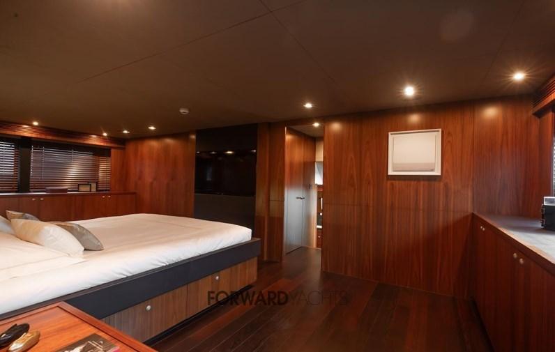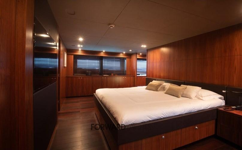 It can comfortably accommodate up to 12 guests in 5 cabins: a large owner's suite forward on the main deck with en-suite bathroom, as well as 2 double cabins and 2 convertible twin cabins with Pullman beds, all equipped with en-suite bathrooms. The crew area has 5 cabins.