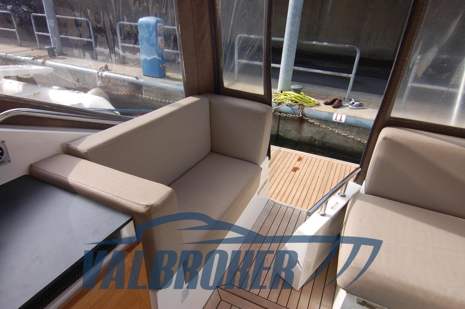 Salon sofa in light leather; Oregon weather station; Movida Sand external cushion upgrade; Type G septic tank, with electric macerator, deck drain with three-way valve for direct flushing of the toilet into the sea; Special edition adjustable steering wheel with logo; Ivory leather salon upholstery;