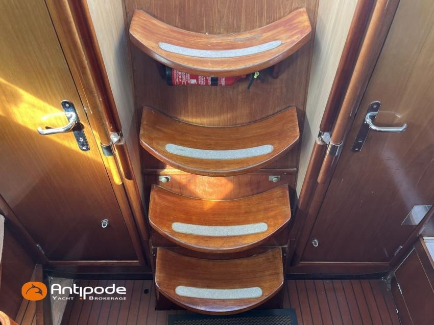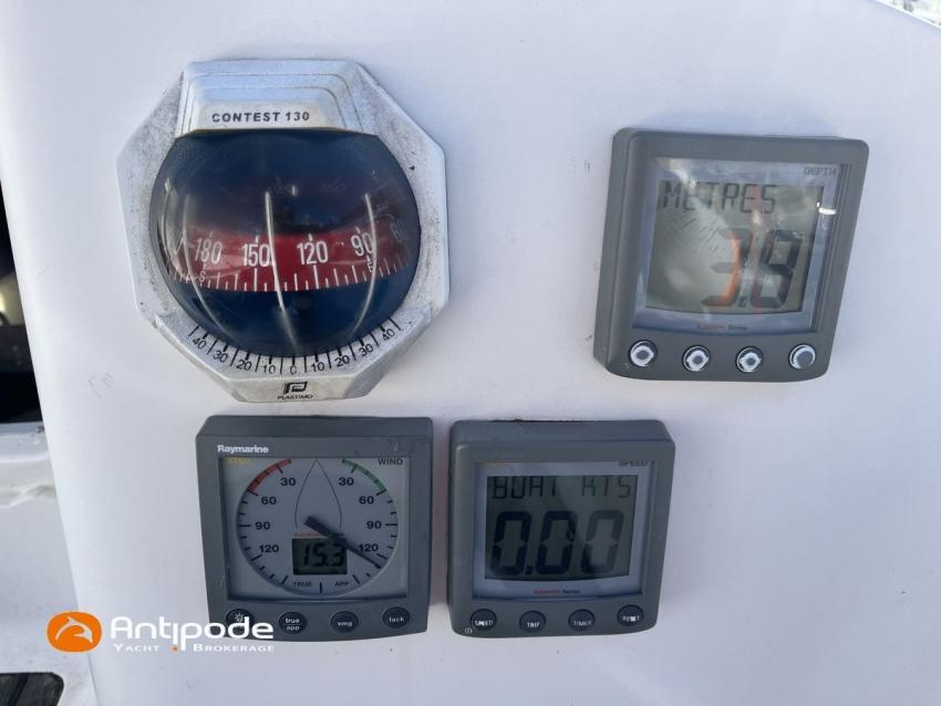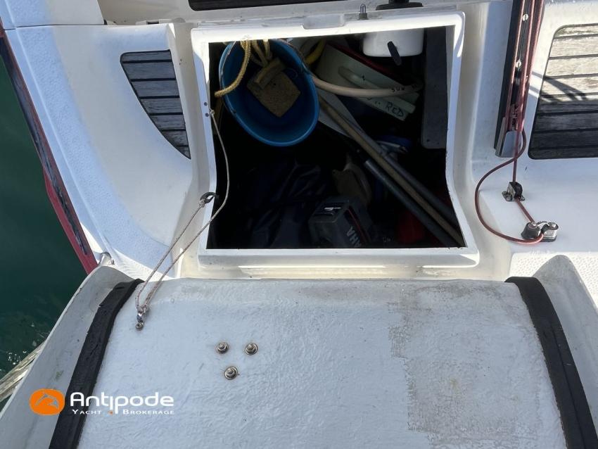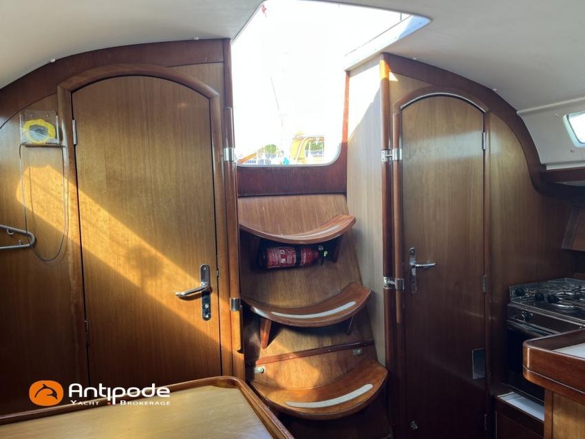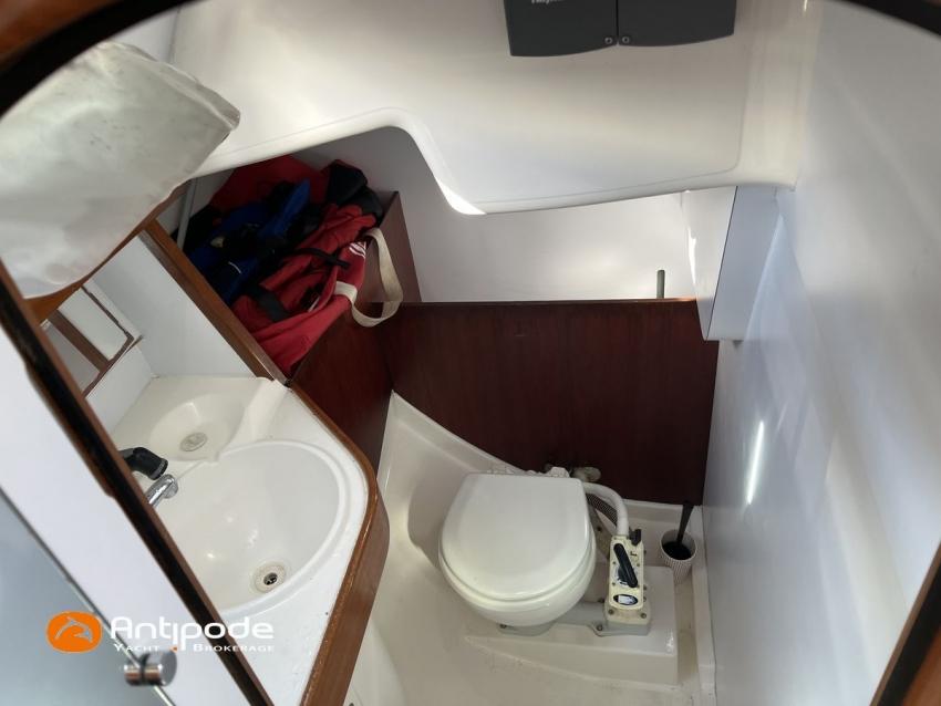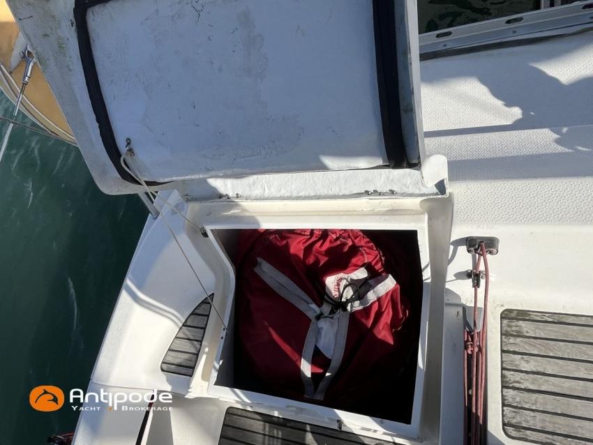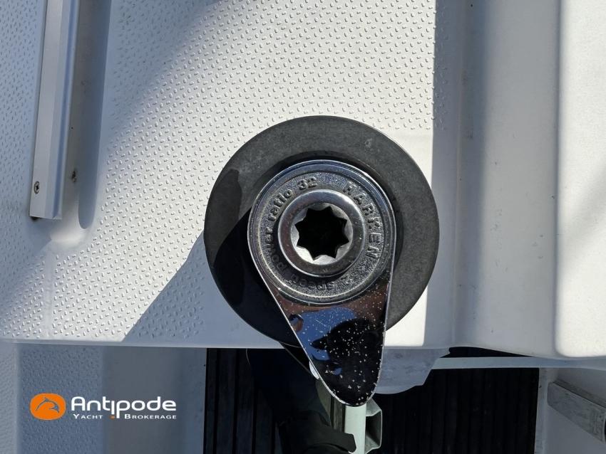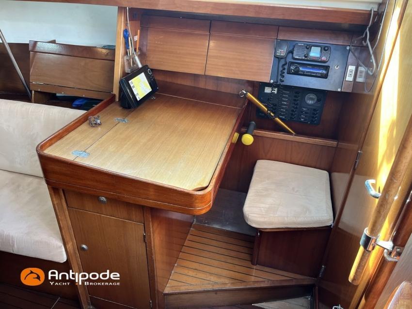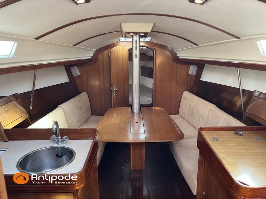 SUN FAST 32, 1999, 2 owners since 1999, Yanmar 2GM20 18 hp (1393 hrs), Interior layout version 1 forward cabin, 1 aft cabin, 1 heads (toilets + shower), Saloon upholstery - 2023, 2 cockpit primary genoa winches - Harken 40, 2 roof winches for adjustment and sail handling - Harken 32, Teak slatted cockpit floor, Teak cockpit seats, Triradial main sail, Main sail lazy bag, Genoa roller furling with drum under deck, Triradial furling genoa, Spinnaker riggings, 2 spinnakers, Raymarine ST 6200 in board autopilot, Raymarine ST 60 navigation system (wind, speed, depth), 3 Raymarine ST 60 cockpit repeaters, GPS and chartplotter (nav station), Electronic navigation charts, VHF / AIS at chart table - NAVICOM RT 650 DSC ASN, Fridge unit 12 V (top opening door) - 2023, 2 burners cooker + oven - 2024, 220 V shore power + battery charger, Engine battery - 70 amp, Service batteries - 2 X 70 amp, Liferaft, Anchor + chain, Located Brittany. For more information or to make an appointment for a visit, contact : Jérôme Le Joubioux +33 6 07 45 71 73 - jerome@antipode-yachts.com