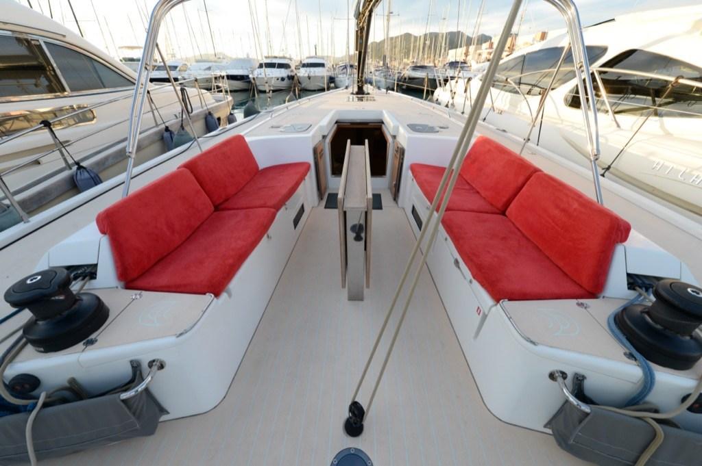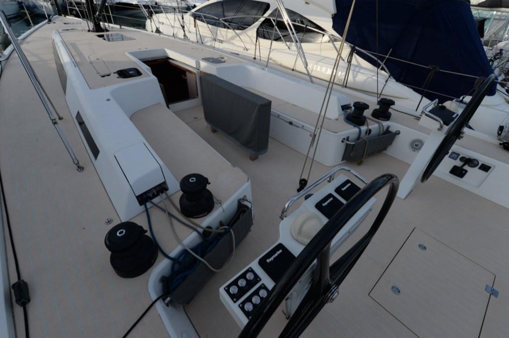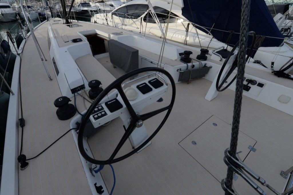 Anchor (ULTRA INOX), Water pressure pump, 4 Batteries (3 servizi e 1 motore + 2 per elica di prua), 2 Folding cleats, Teak Side Decks, Deck Shower, Twin Steering, Tender Garage, Auxiliary Engine (Torqueedo), 8 Fenders, Platform (elettrico con comando su colonnina timoneria), Teak deck, Teak Cockpit, Shorepower connector, Electric Windlass (Con comando su colonnina timoneria), Rod rigging, cockpit table (Fisso), Living Room Foldable Table, Tender, Teak Deckhouse, 2 Winch (Harken Performa 60ST), 2 Winch Electric, Bow Winches, Windex.