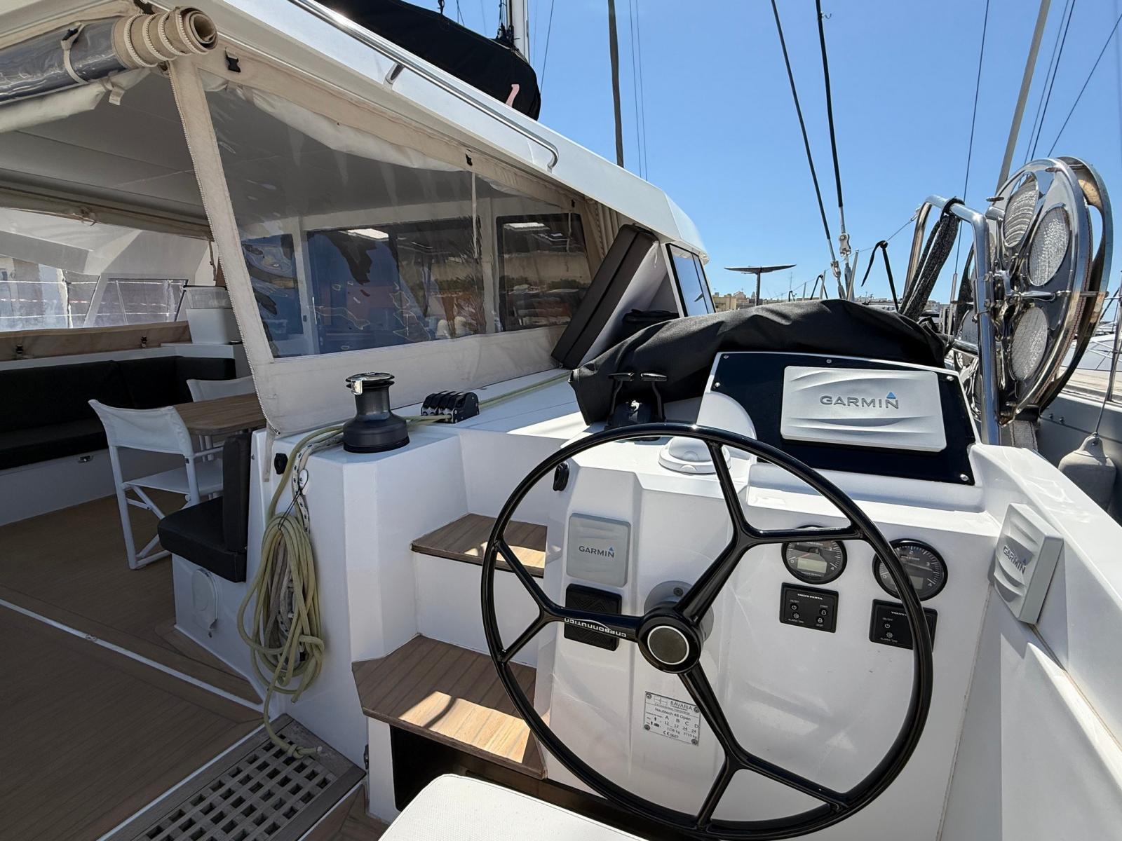 AIS, Radar Antenna (Garmin), Chain counter, Display (GARMIN GMI20 X2), 3 GPS (Garmin - GPSmap 7408 Chart plotter X2 + RAIMARINE AXIOM INTERNO), Autopilot (GARMIN GHP20), VHF Radio (GARMIN 300 AIS).