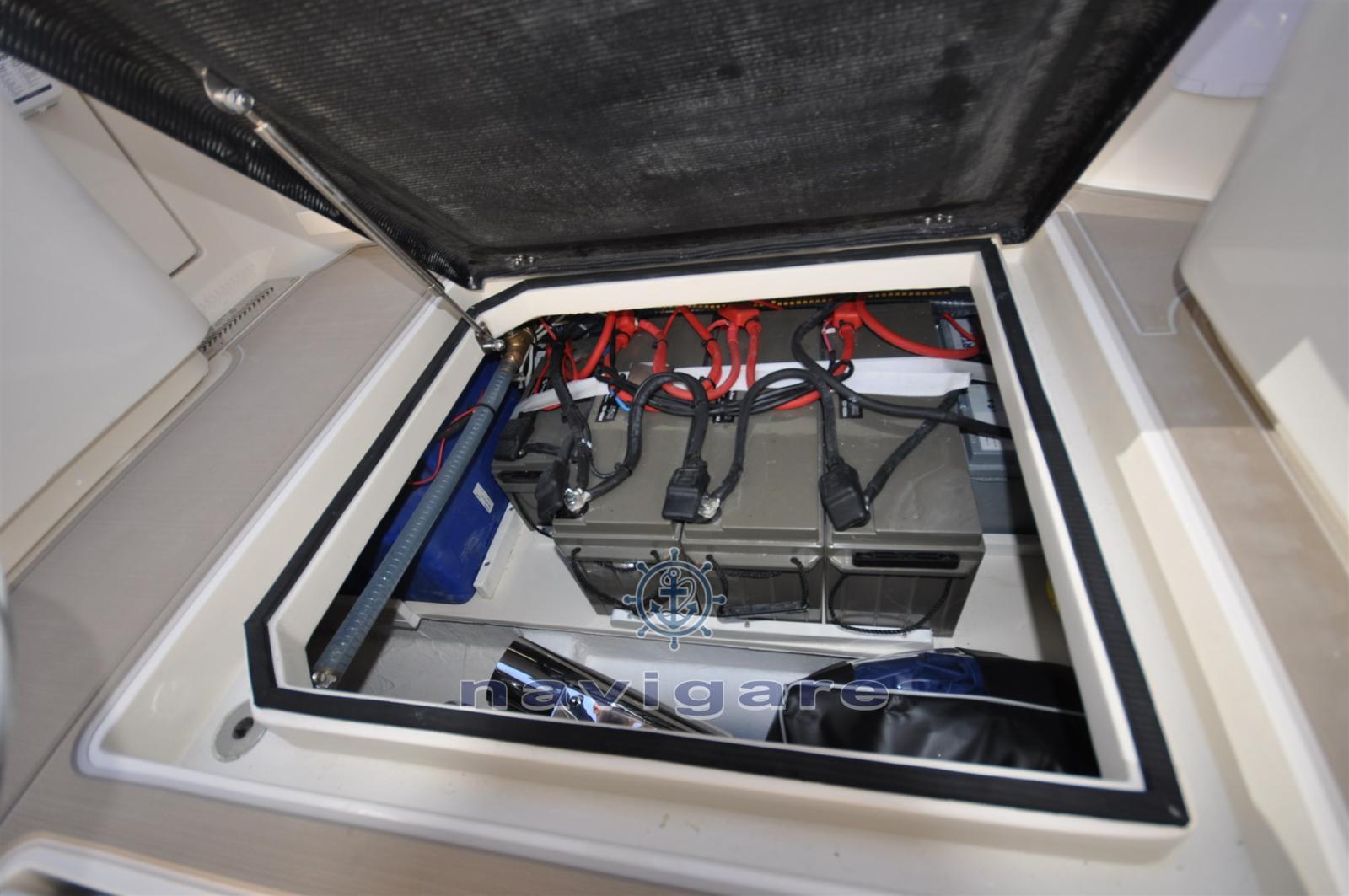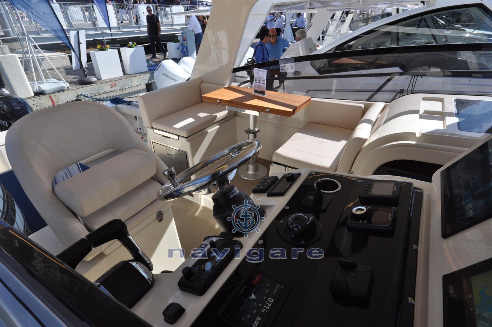 A hardtop protects the galley/dinette area and the console, which looks towards the bow where a large sundeck defines the bow as the relaxation area for the fisherman's family. The classic Tuccoli hull brings this boat up to 43 knots thrust from 600 hp, in single or twin-engine version, exclusively outboard. For cruising speed, however, this hull is around 25 knots.