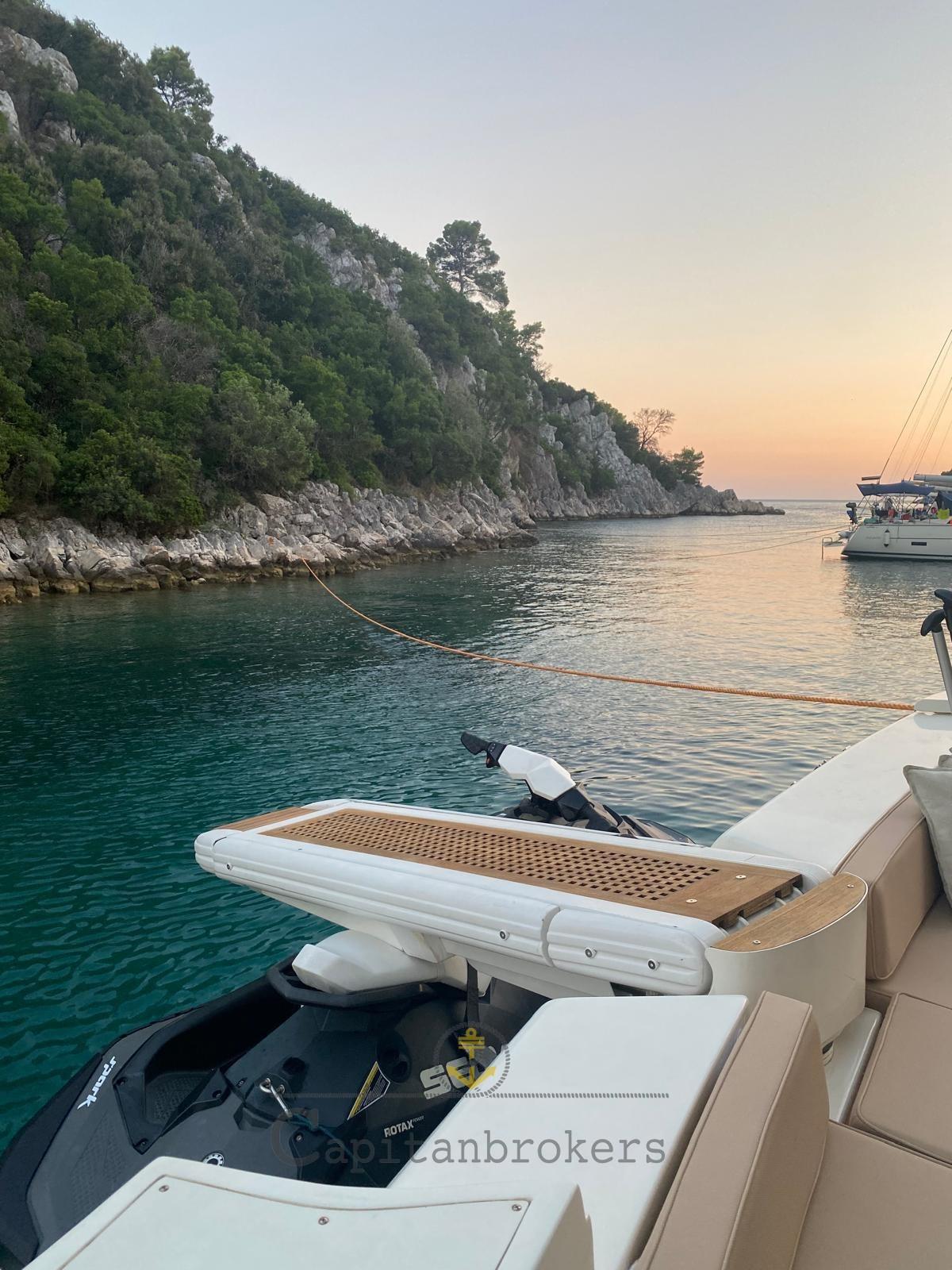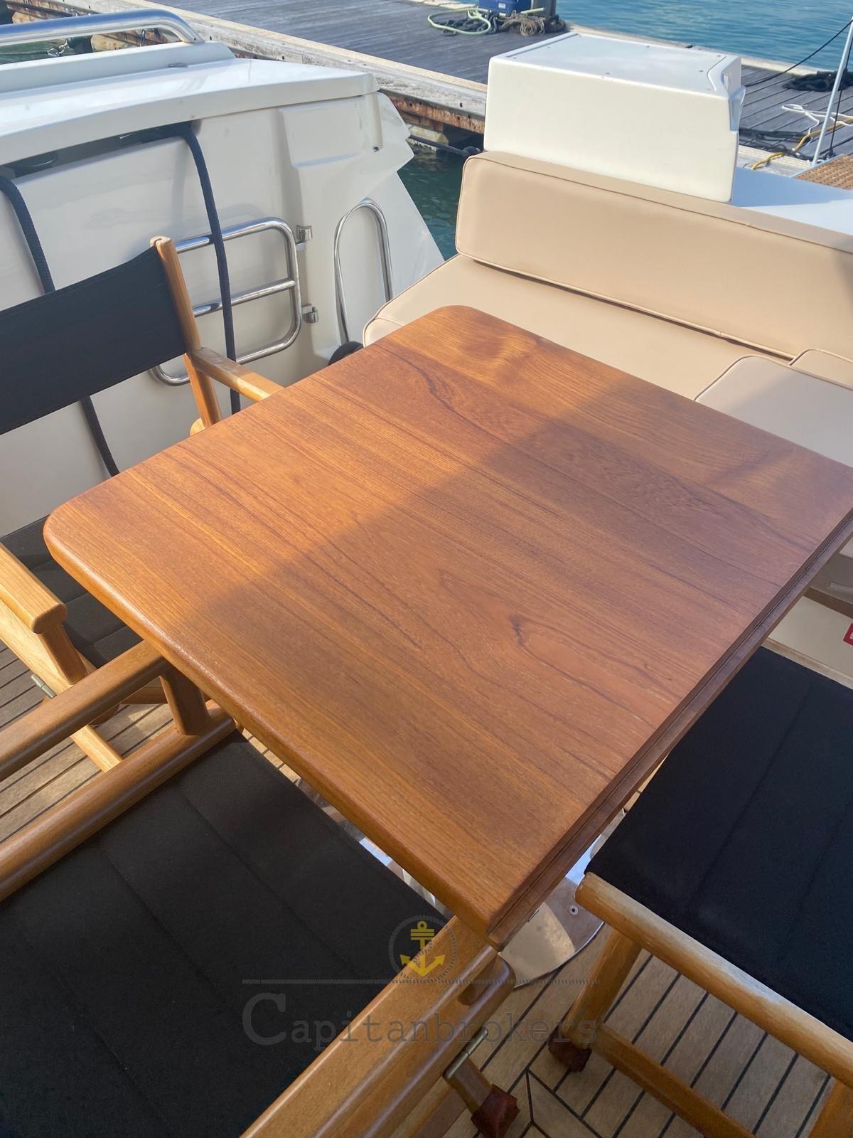 Engine Alarm, Bilge Alarm, Water pressure pump, Underwater lights (led), Gangway (estraibile), Platform, Automatic Bilge Pump, Manual Bilge Pump, Entry door, Teak Cockpit, Shorepower connector, Electric Windlass, swimming ladder (teak e acciaio), cockpit table (teak con piedi in acciaio), Tender (+ mt fb), Horn.
