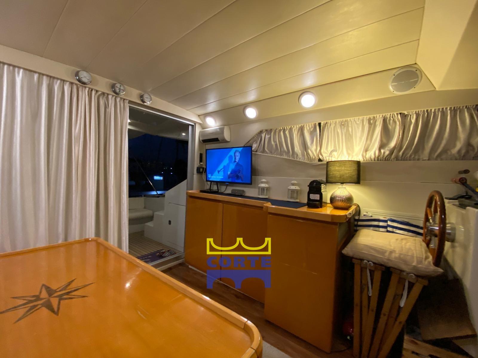 Engine Alarm, Water pressure pump, Batteries (2023), Deck Shower, Twin Steering, Hydraulic Flaps, Crane (passerella), Underwater lights, Gangway (elettroidraulica), Platform (di poppa in teak), Automatic Bilge Pump, Entry door, Teak Cockpit, Shorepower connector, Water harbor connector system, Rollbar, Electric Windlass, swimming ladder, Living Room Foldable Table, Horn, Bow Winches.