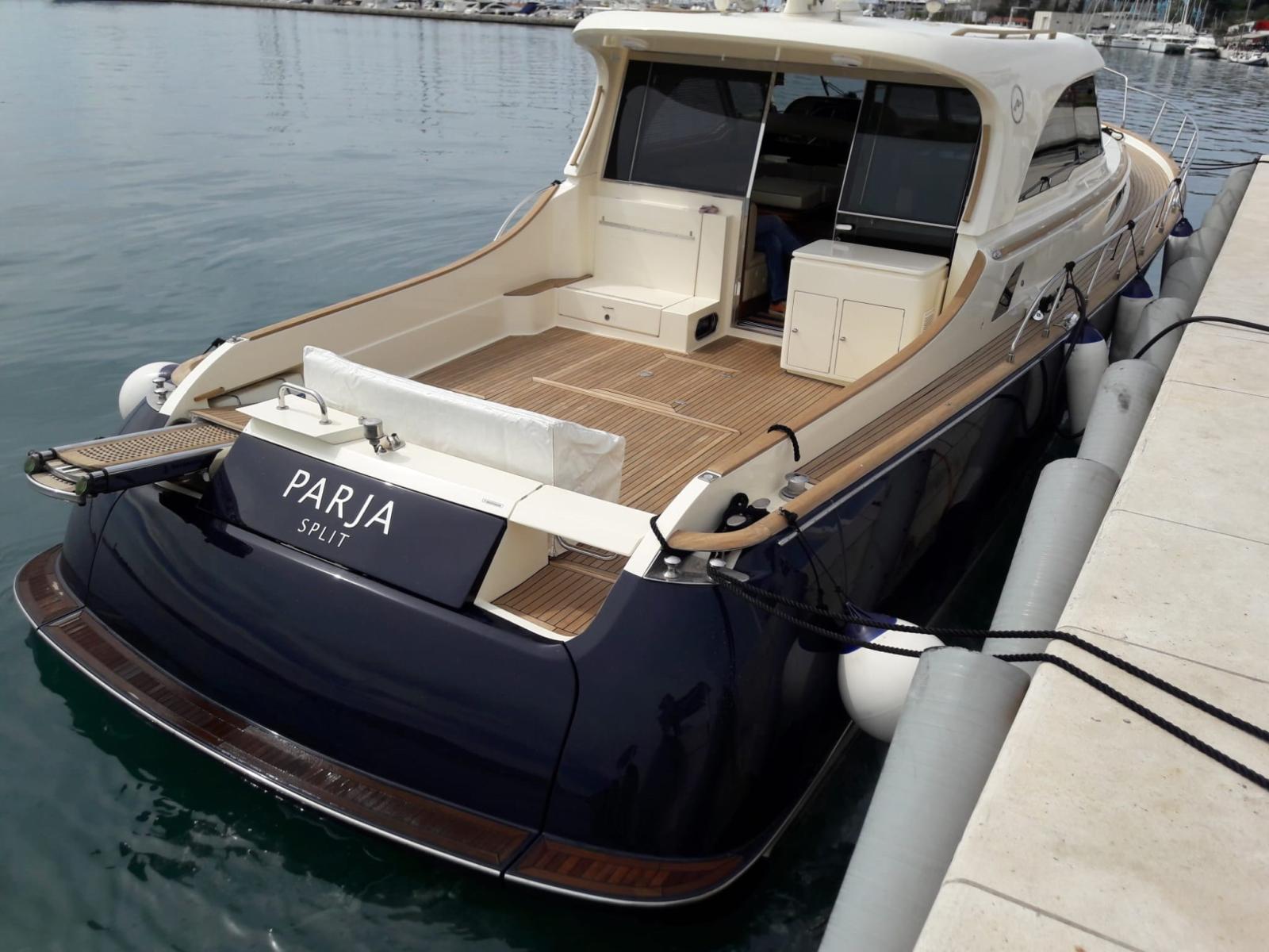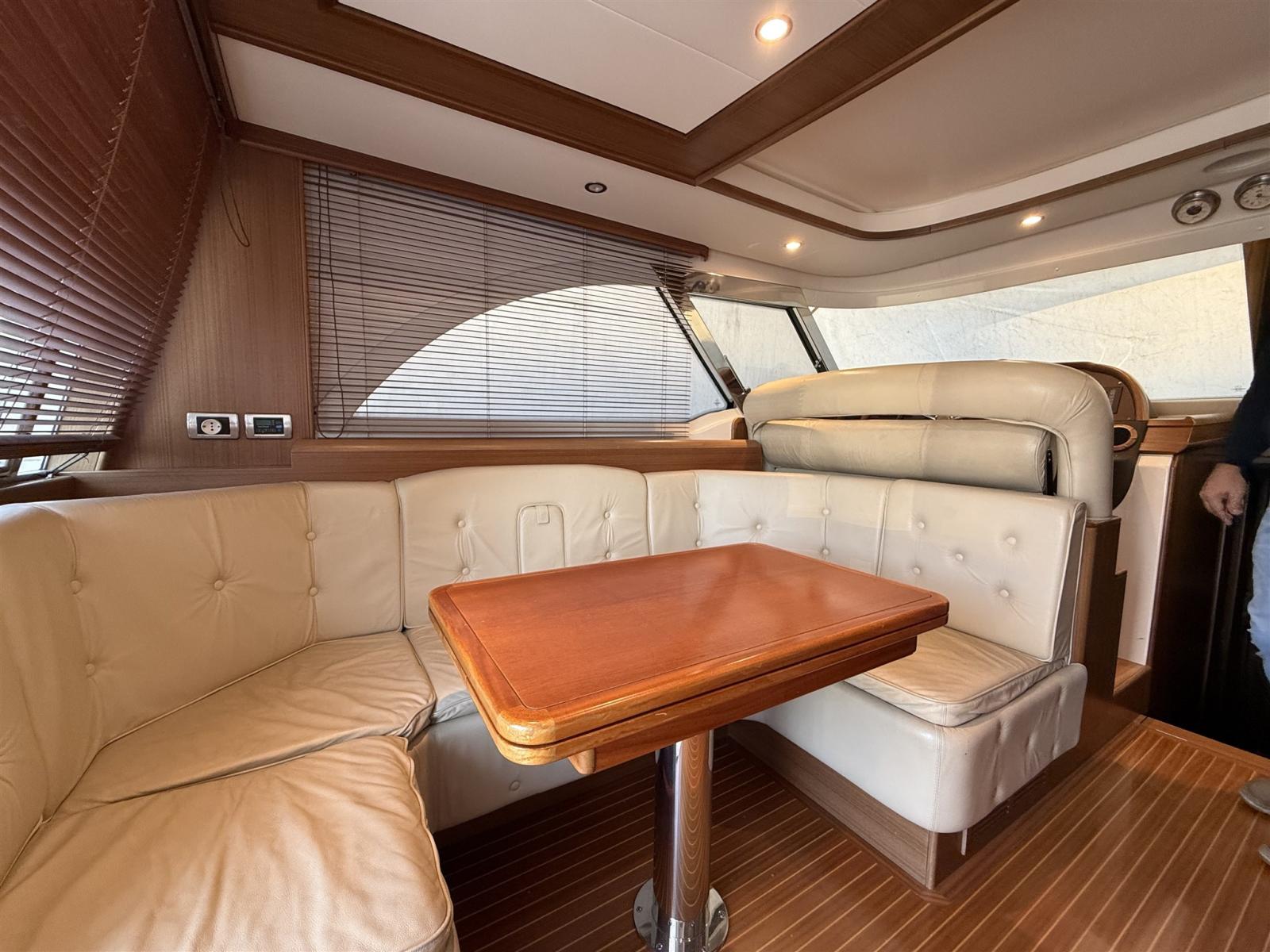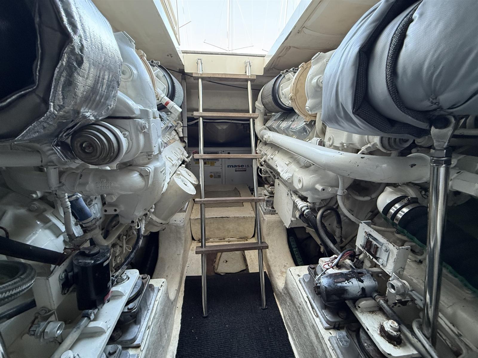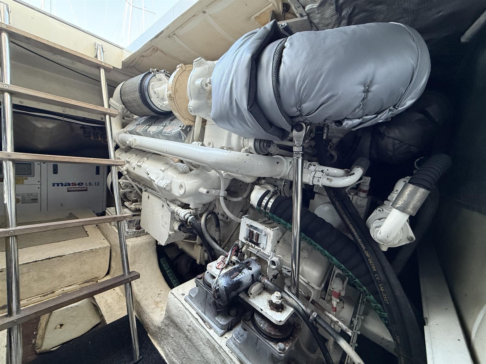 Engine Alarm, Bilge Alarm, Shore power cable, Guard rail, Deck Shower, Twin Steering, Hydraulic Flaps (N°2), Fire Extinguishing System, Flaps Indicators, Washbasin in the cockpit, Gangway (IDRAULICA), Platform, Automatic Bilge Pump, Manual Bilge Pump, Seawater Pump, Teak deck, Teak Cockpit, Shorepower connector, Voltage Rectifier, Electric Windlass, swimming ladder, Horn, Stern Winches.