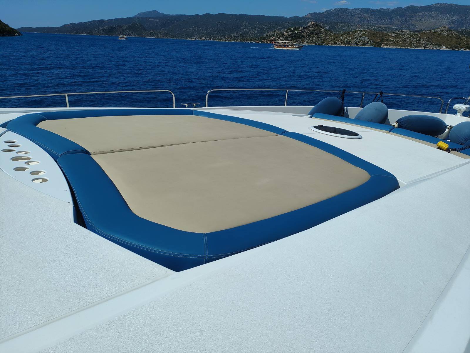 - 2022: All carpets replaced, salon and cabin ceilings re-upholstered, leather re-trim of sofas and helm seating, salon and galley varnish renewed