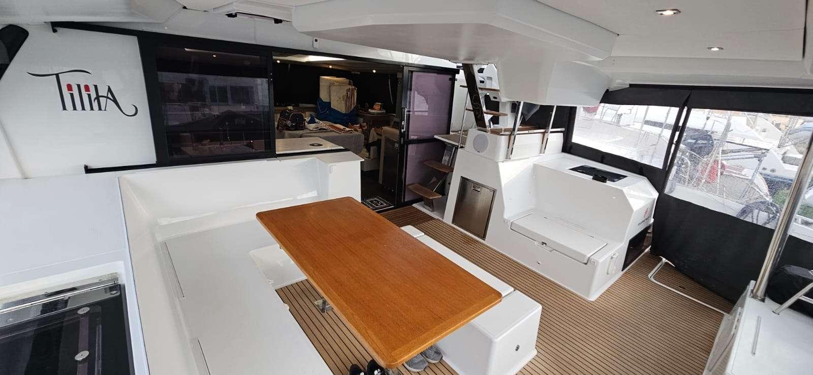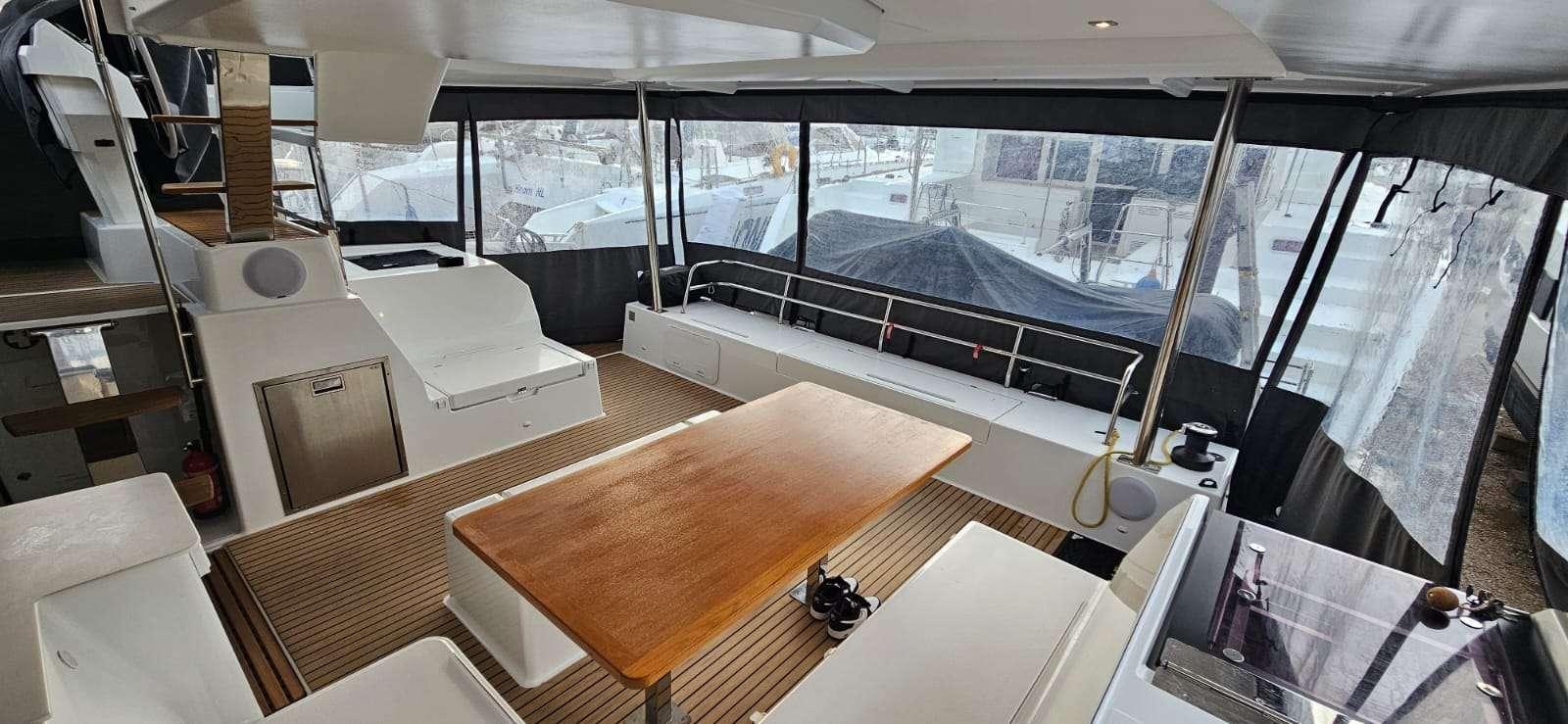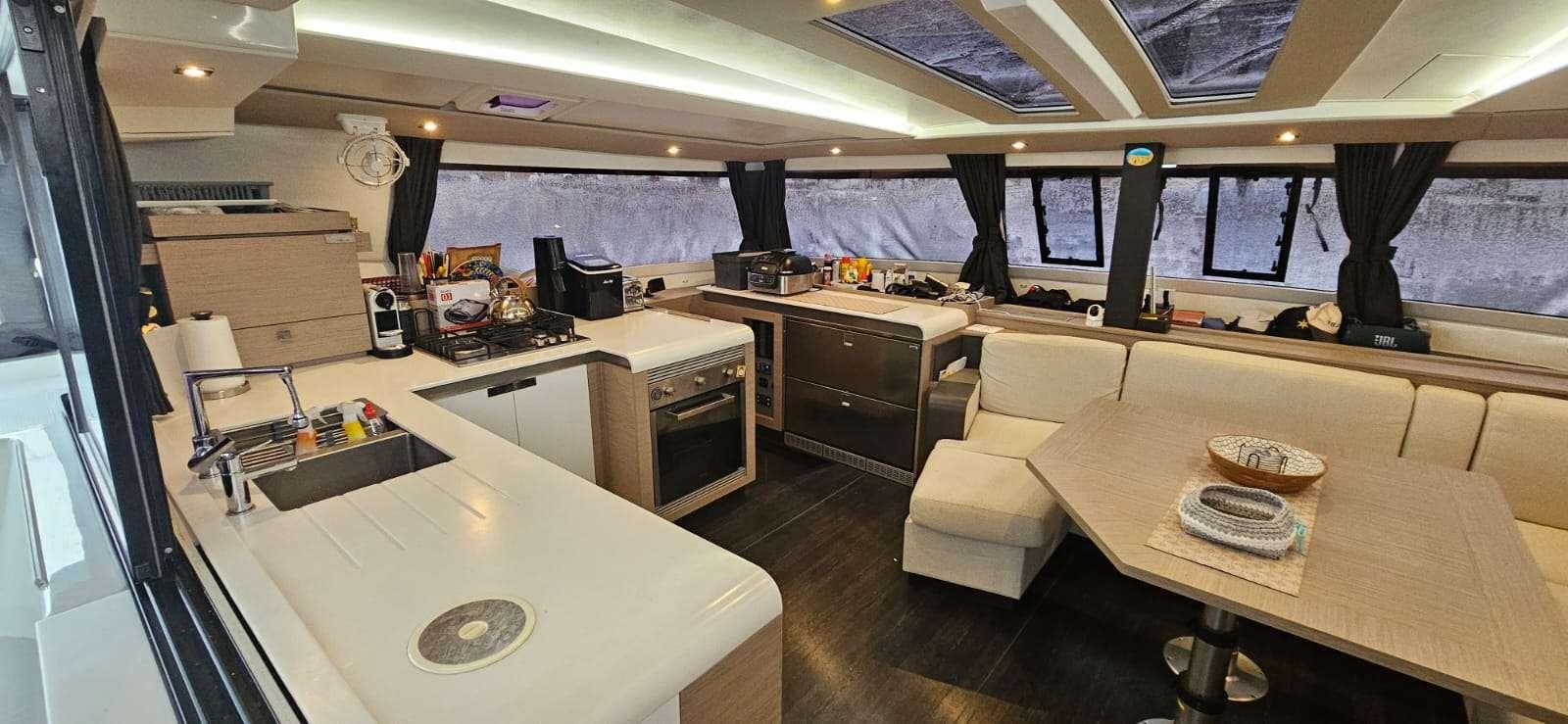 Fountain Pajot Tanna 47Quintet 5 cabin 5 wcFirst Private owner, never chartered. Built year: 2022 2 x Yanmar 57 hp, Generator, Air condition, Water maker. Hydraulic ramp, Electric Gangway, Solar panels, Electric winches. Location: Greece. Flag UK.