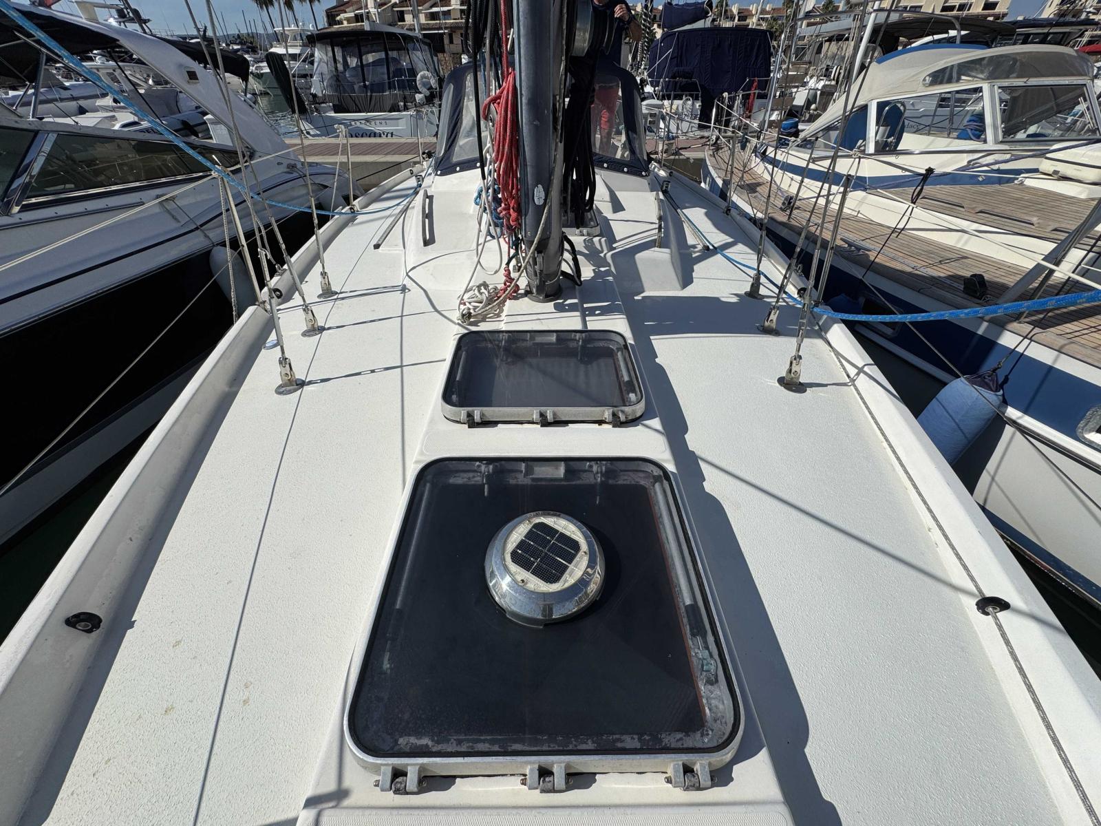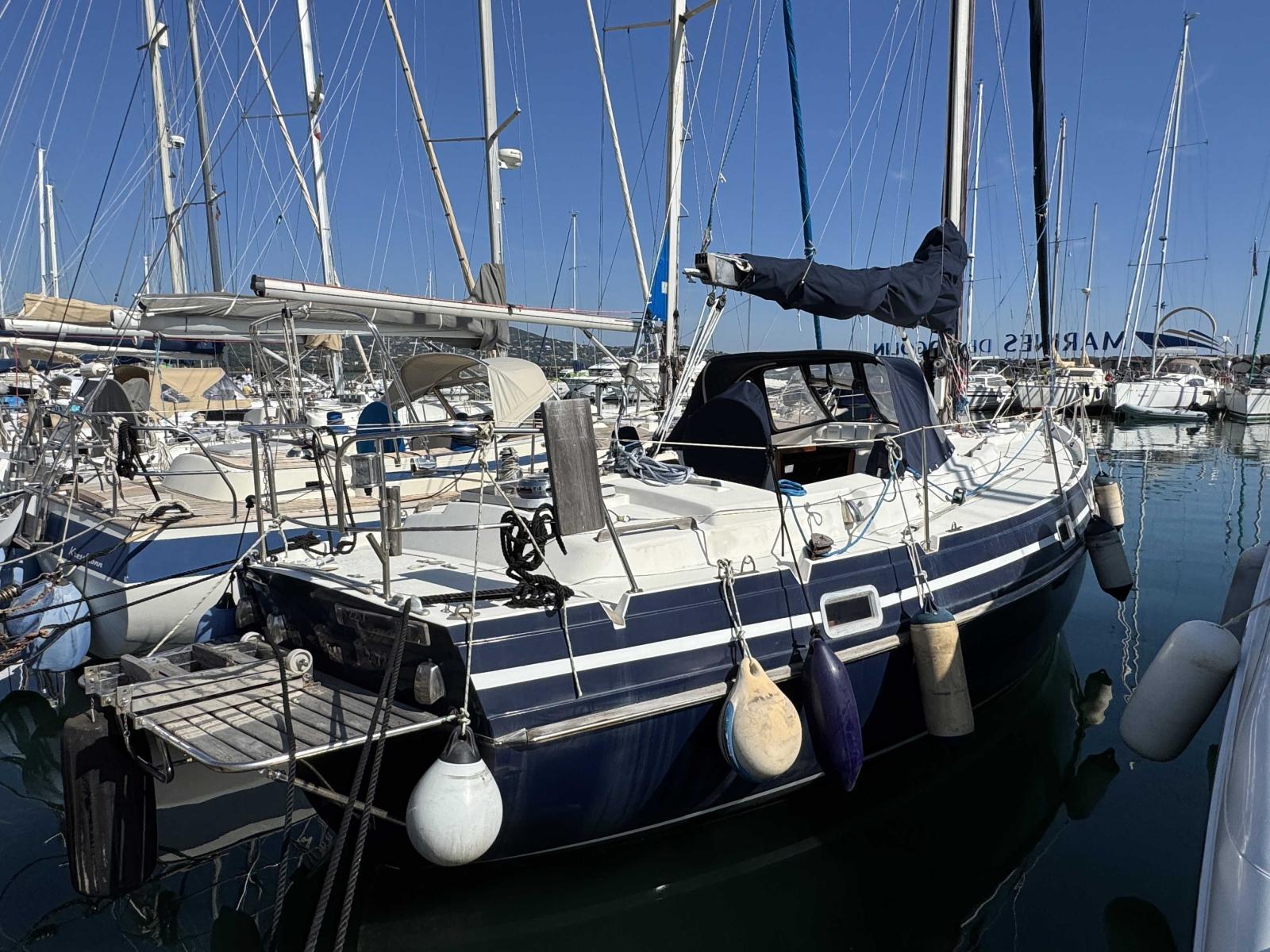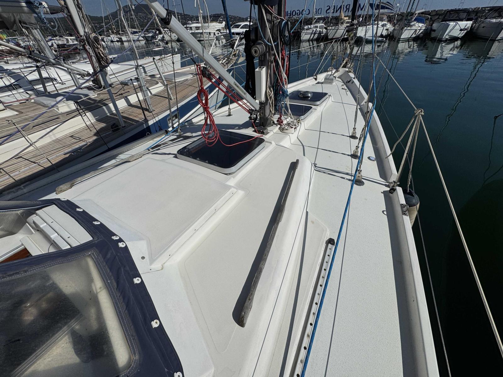 Its bow thruster, installed two years ago, facilitates all manoeuvres, even in the most confined harbours. The autopilot ensures remarkable sailing comfort, whether you are cruising along the coast or offshore. The hull was sandblasted and protected two years ago, ensuring a sound and durable base.
