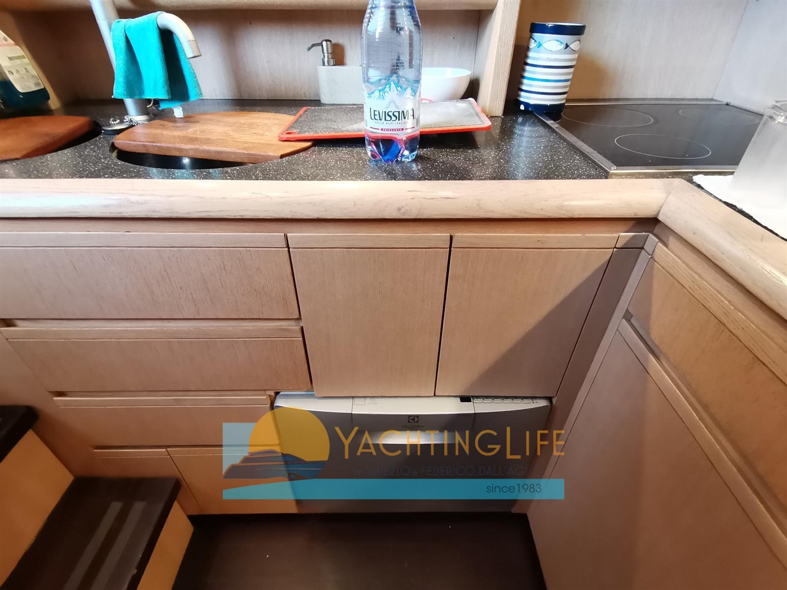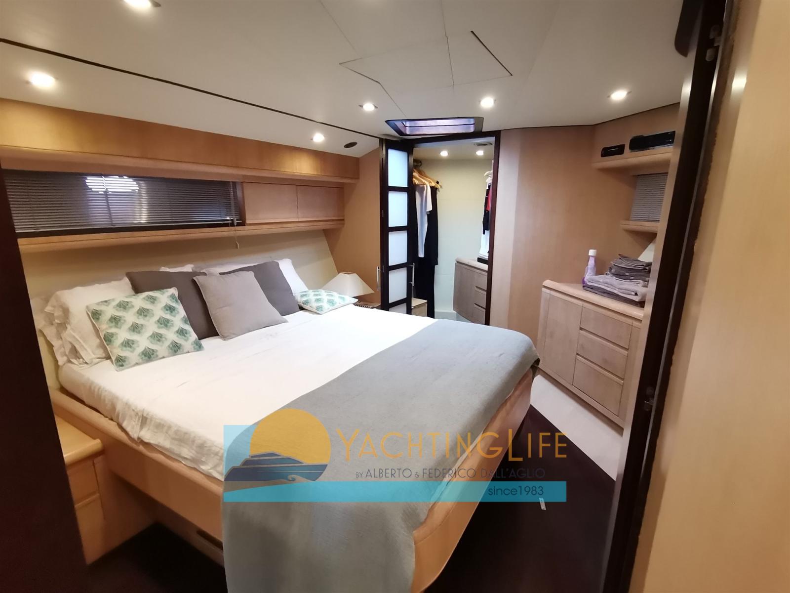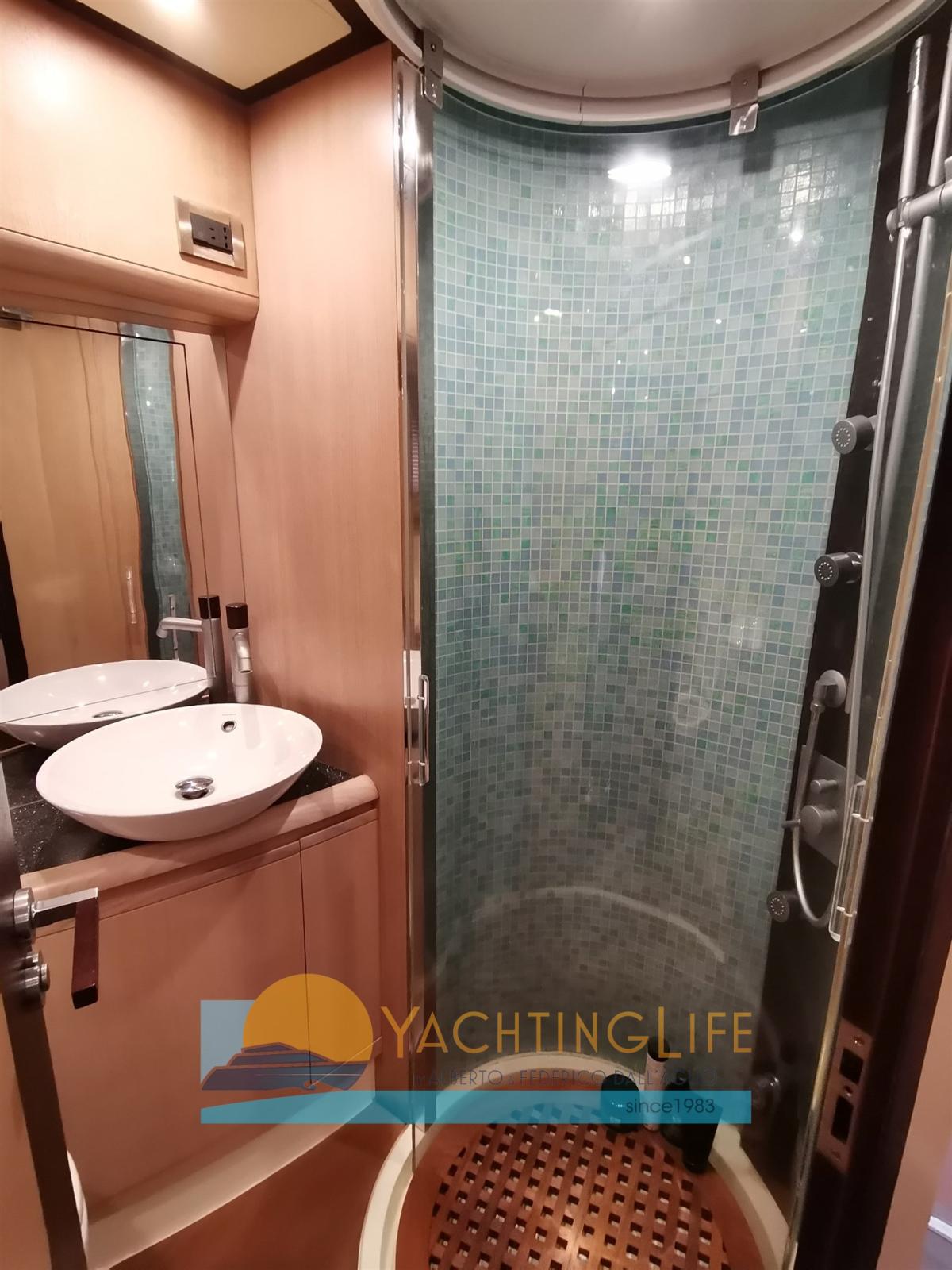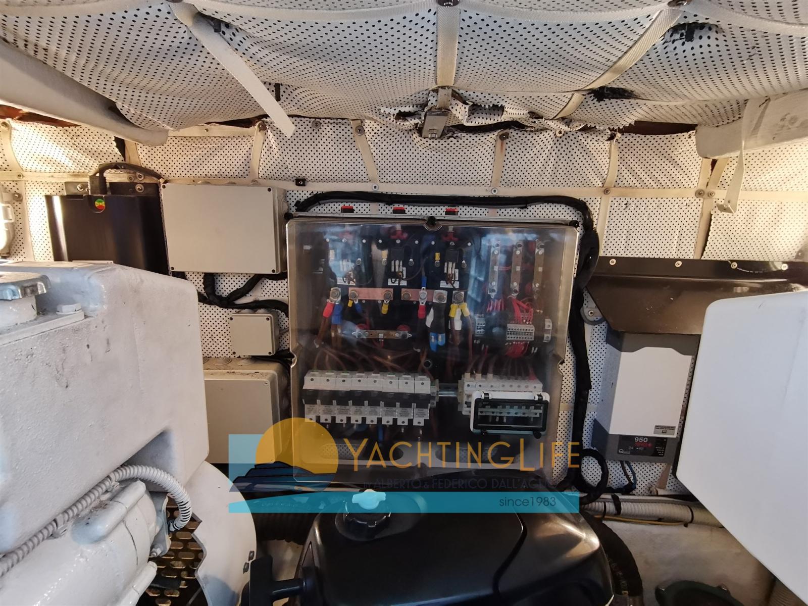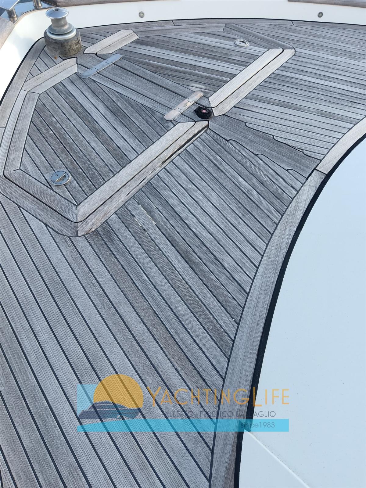 Engine Alarm, Bilge Alarm, Water pressure pump, Teak Side Decks, Deck Shower, Directional Spotlight, Hydraulic Flaps, Fire Extinguishing System, Flaps Indicators, Courtesy Lights, Gangway (idraulica), Automatic Bilge Pump, Entry door, Side door, Teak Cockpit, Shorepower connector, Electric Windlass, swimming ladder, cockpit table, Tender, Horn, Stern Winches.