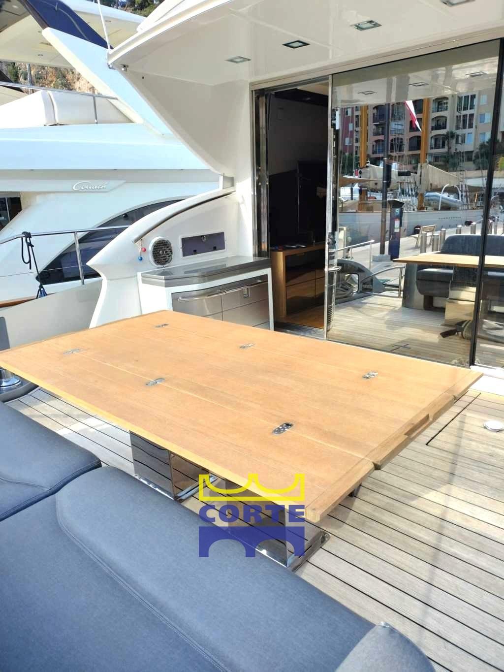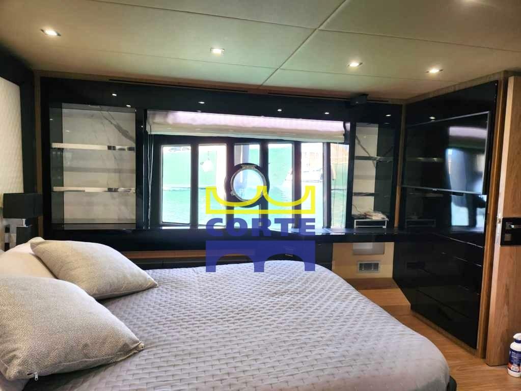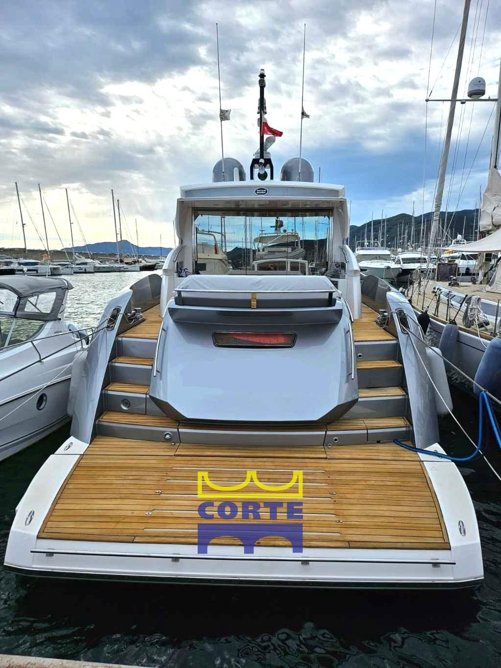 Fume/Gas Detector, Engine Alarm, Bilge Alarm, Water pressure pump, Batteries (AGM Mastervolt), Teak Side Decks, Shore power cable, Deck Shower, Tender Garage, Hard top, Fire Extinguishing System, Washbasin in the cockpit, Courtesy Lights, Underwater lights, Gangway (idraulica a scomparsa), Platform (di poppa tender lift), Automatic Bilge Pump, Teak deck, Entry door, Teak Cockpit, Shorepower connector, Water harbor connector system, Electric Windlass, swimming ladder, cockpit table, Horn, 2 Stern Winches, Bow Winches.