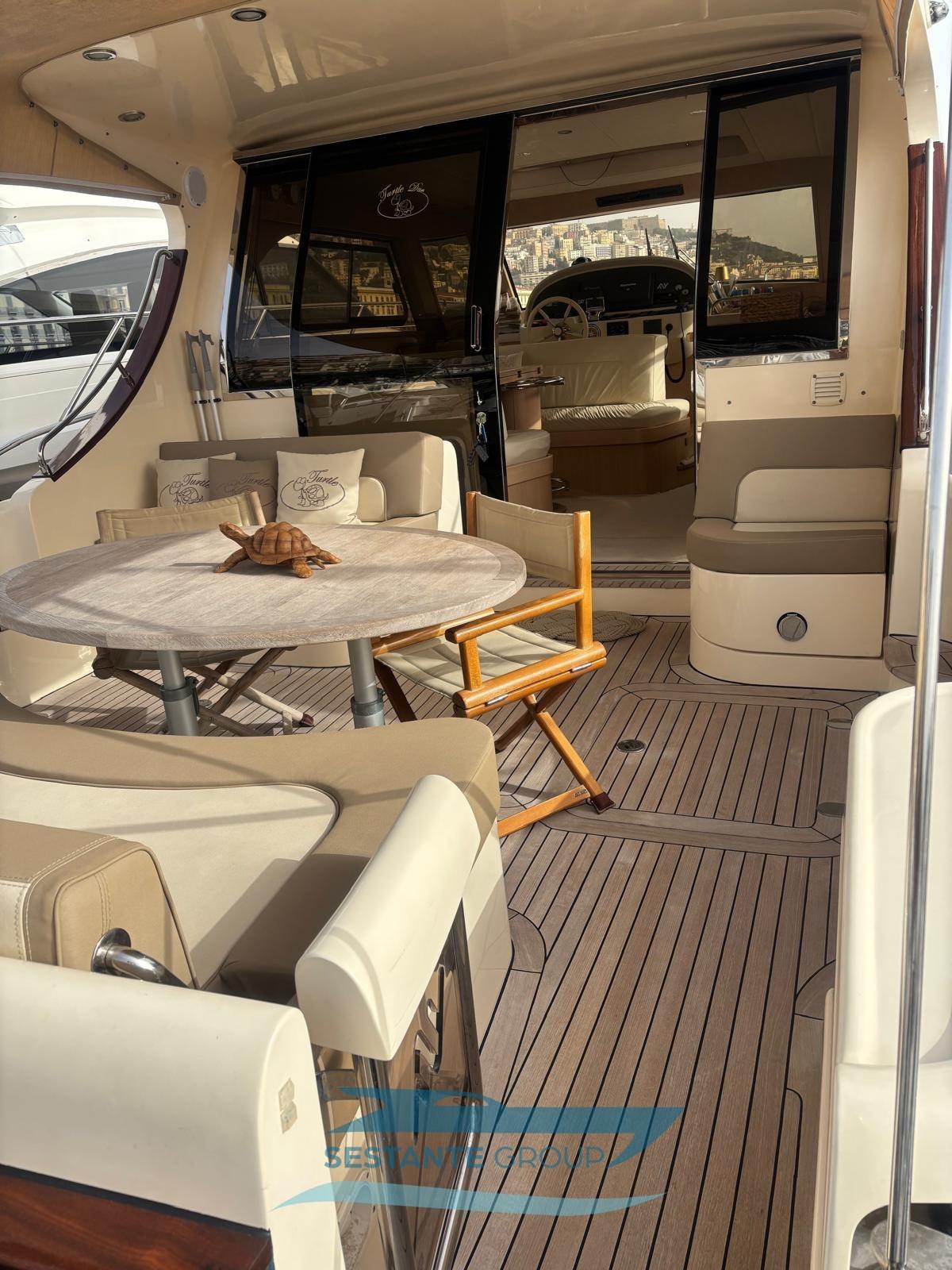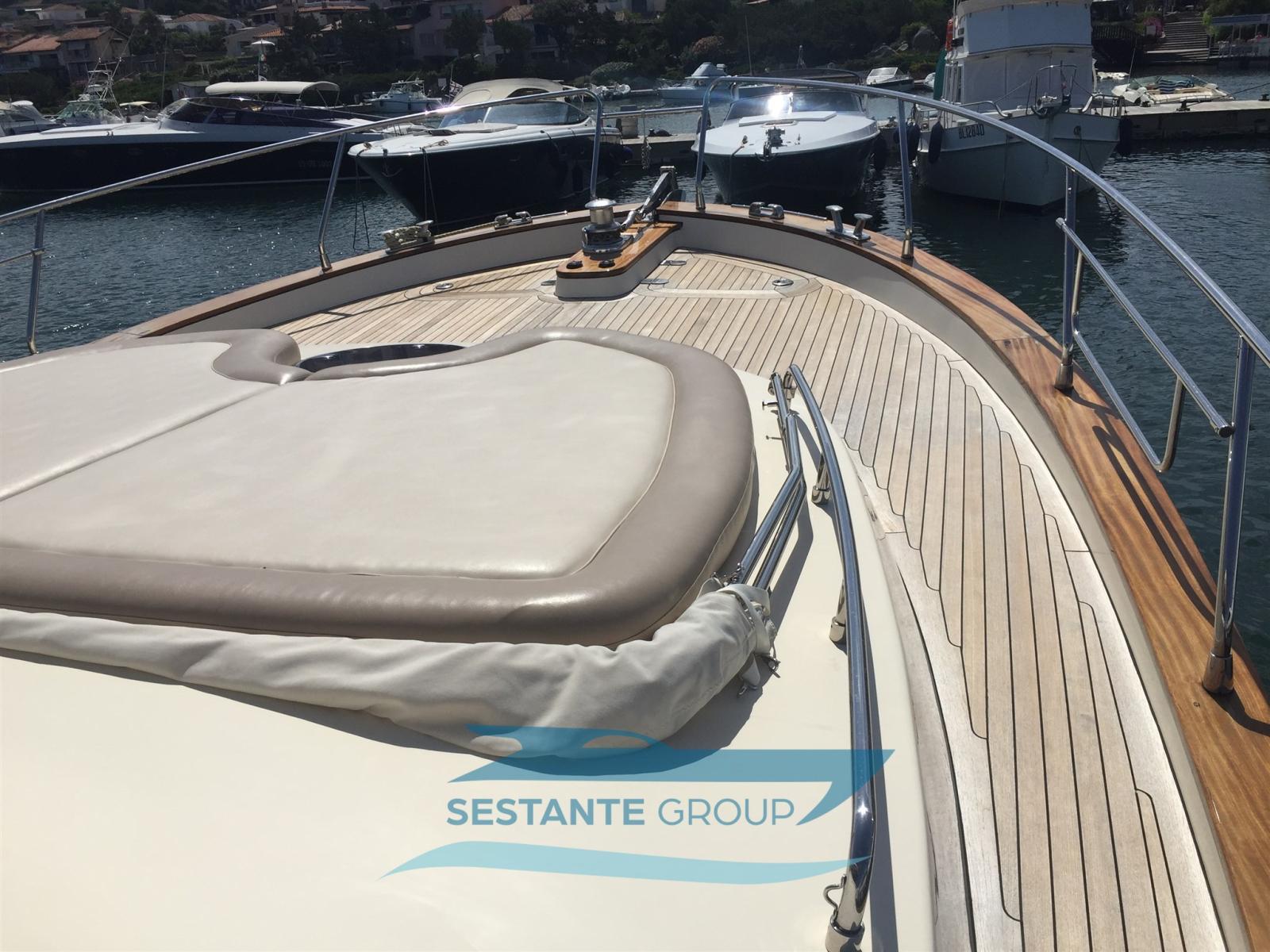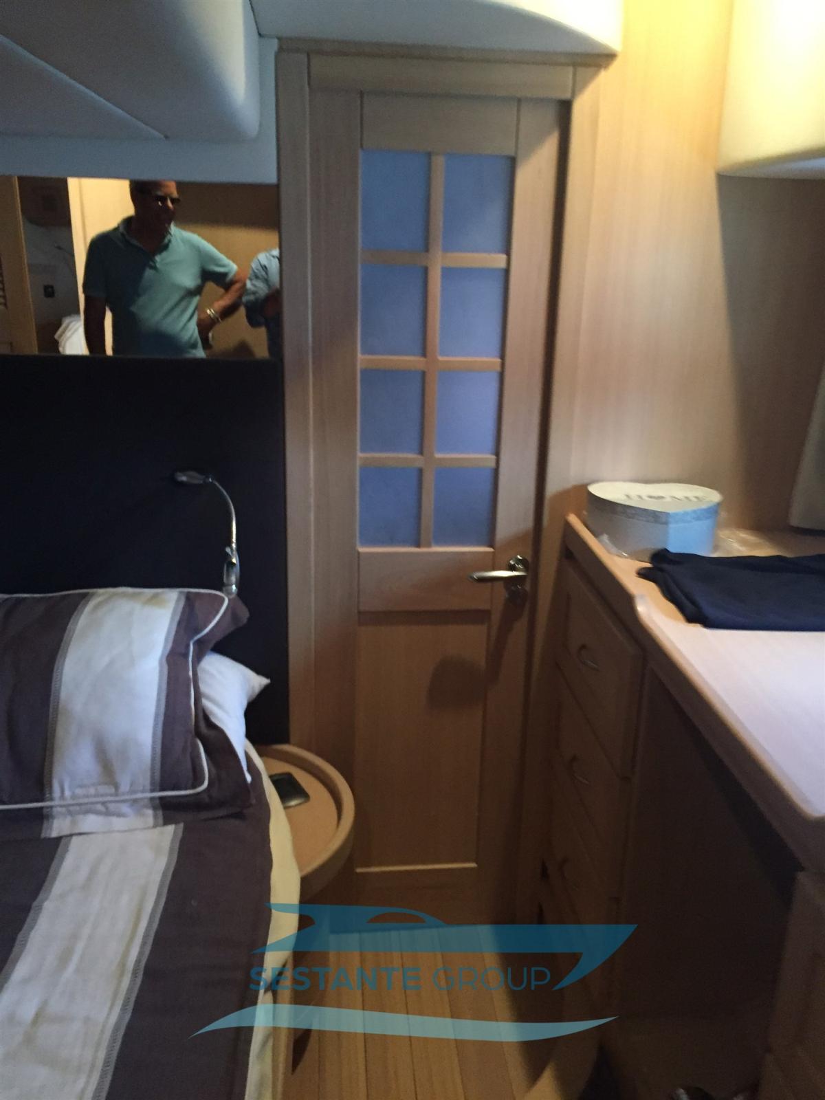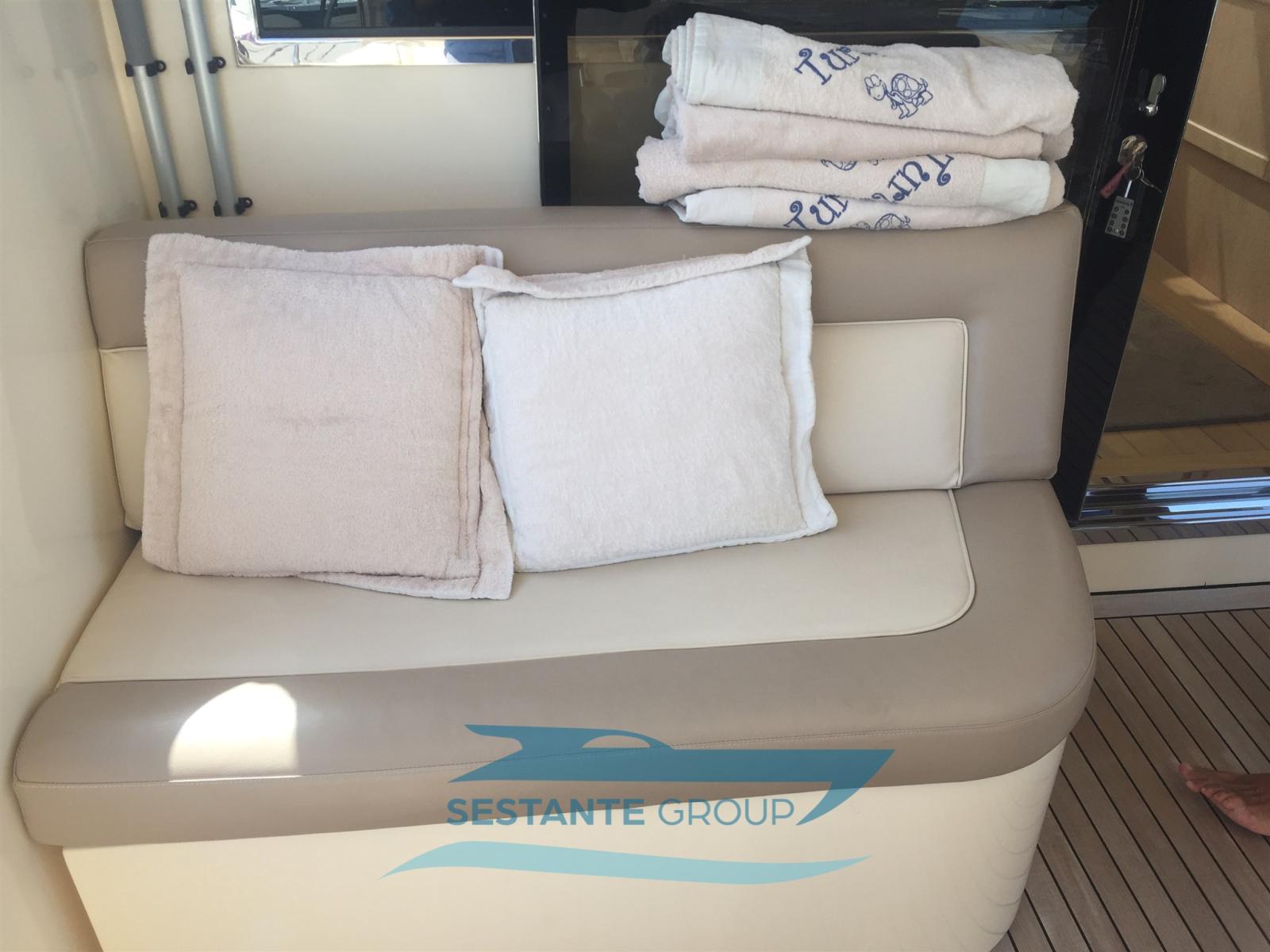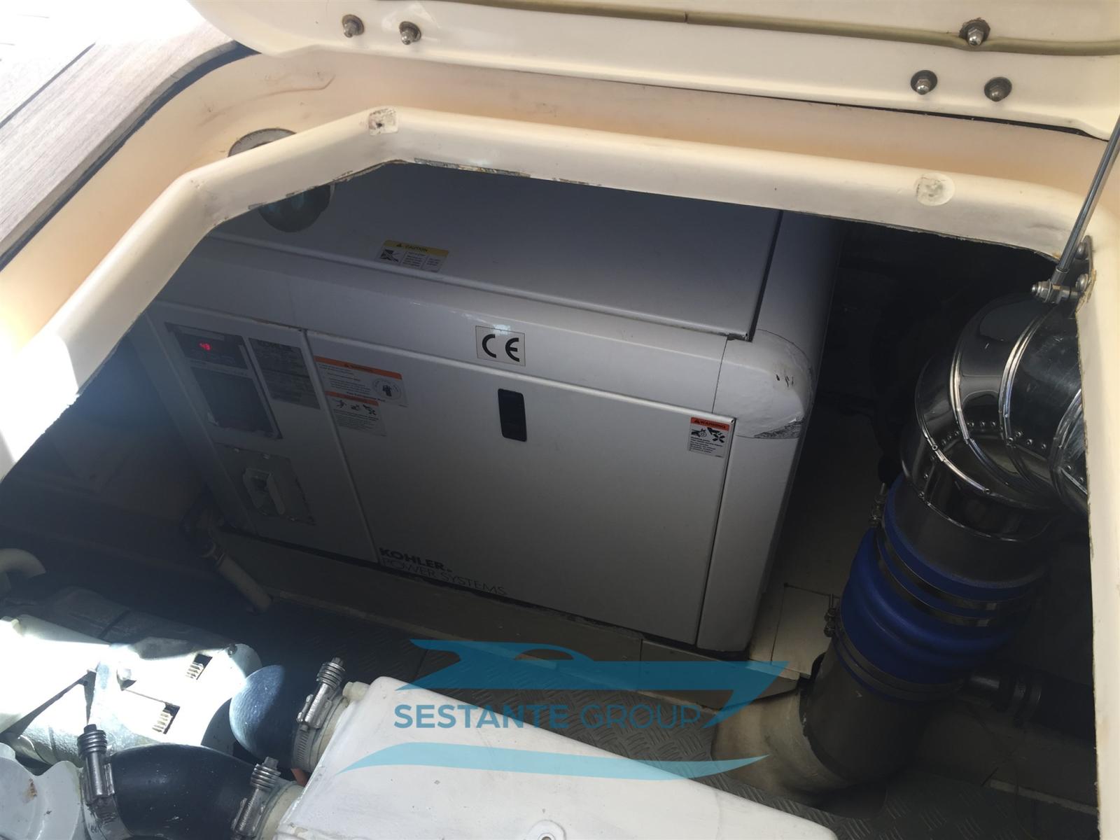 Fume/Gas Detector, Water pressure pump, Teak Side Decks, Deck Shower, Electric Flaps, Tender Garage, Hard top, Fire Extinguishing System, Flaps Indicators, Gangway (elettrica), Automatic Bilge Pump, Manual Bilge Pump, Entry door, Teak Cockpit, Shorepower connector, Voltage Rectifier, Electric Windlass, swimming ladder, Tender, Horn, Stern Winches.