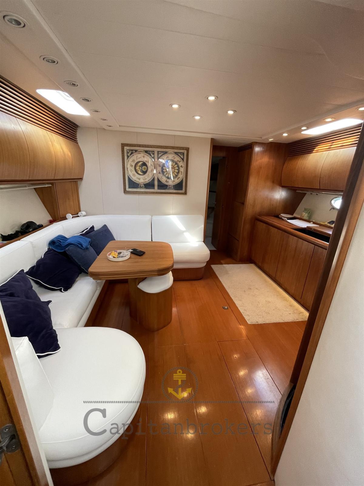 Engine Alarm, Bilge Alarm, 5 Batteries, Deck Shower, Crane (passerella), Washbasin in the cockpit, Automatic Bilge Pump, Manual Bilge Pump, Teak Cockpit, Shorepower connector, Water harbor connector system, Electric Windlass, swimming ladder, Saddles for tender, cockpit table, Horn.