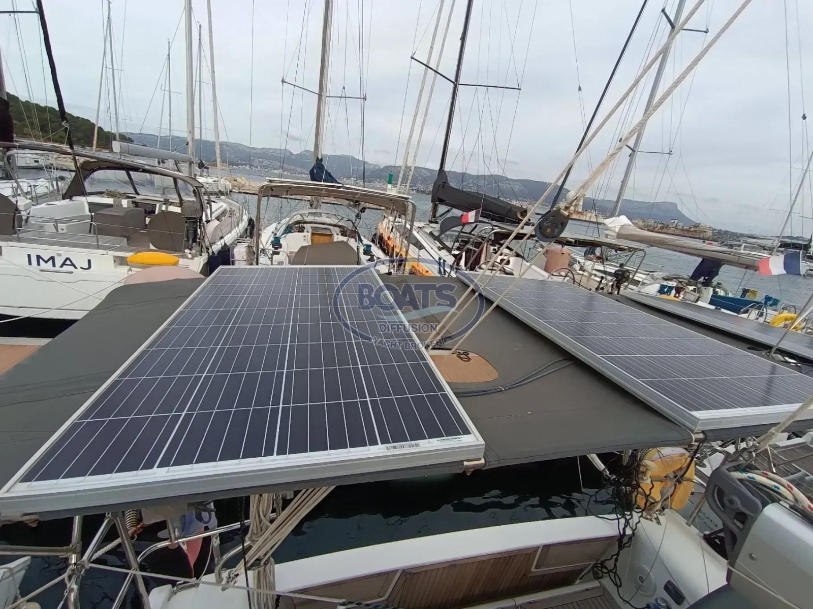 Easy handling thanks to an electric winch, a furling genoa, and a lazy bag.