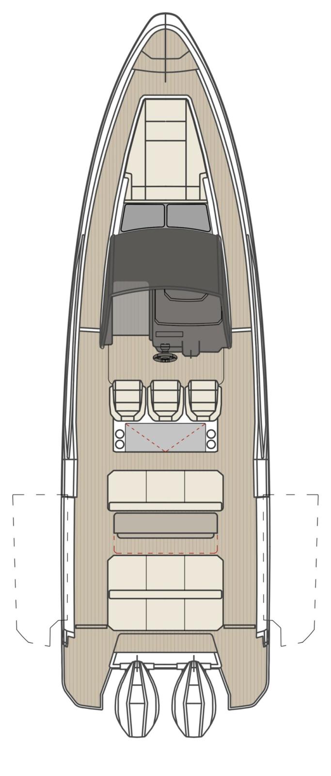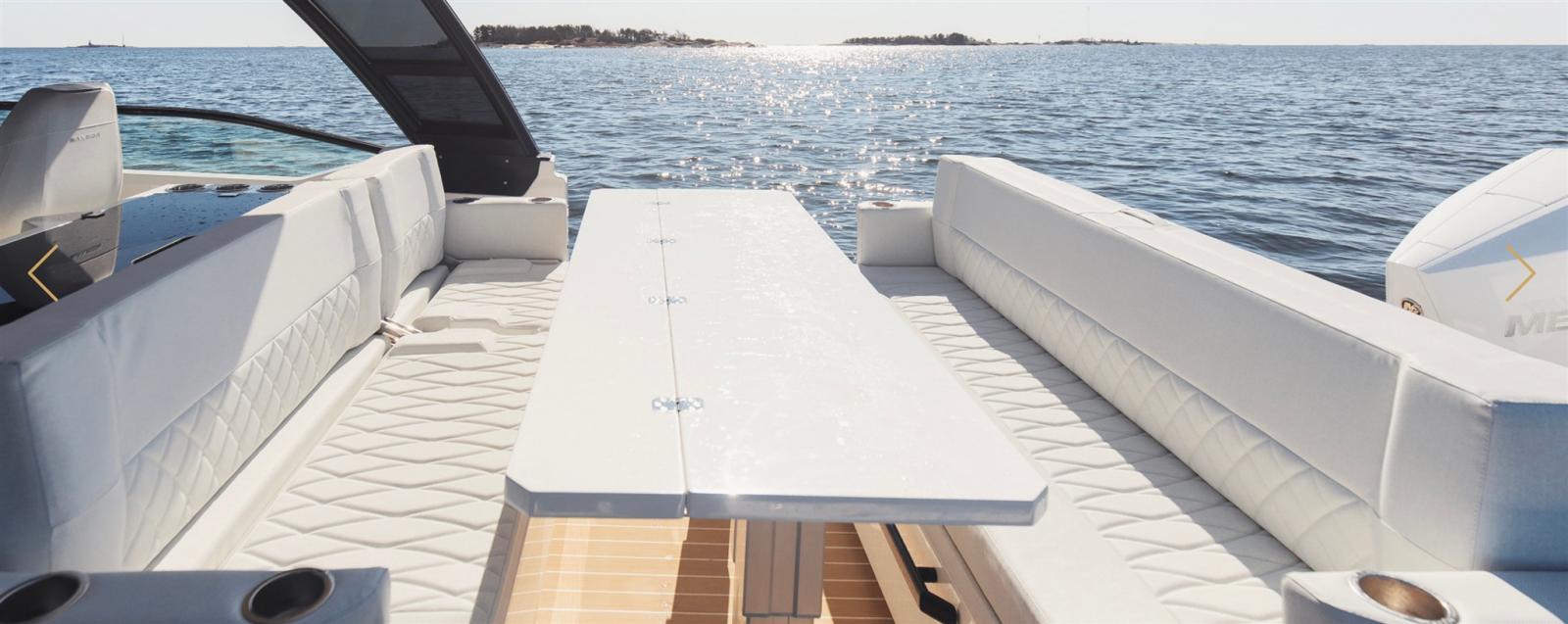The Saxdor 320 GTO is the perfect balance of Italian design, American functionality, German quality and a French-style price. Equipped with a T-top and walk-around side walkways, it offers a refined design, powerful performance with outboard engines and an efficient and economical hull when sailing. All three versions (GTO, GTC and GT) share these distinctive features. The configuration with a single 300hp Mercury V8 engine allows it to reach a maximum speed of 40 knots, with a comfortable cruise around 30 knots. With two 300hp engines, on the other hand, the Saxdor 320 easily exceeds 50 knots, maintaining an optimal speed between 20 and 40 knots. The sundeck extended to the bow and the dinette that converts into a relaxation area offer ample space to lie down and enjoy the sun. In addition, with a simple gesture, the folding backrest transforms the front seats into comfortable benches facing forward to welcome guests. Contact us for more details.
