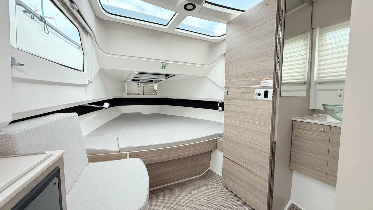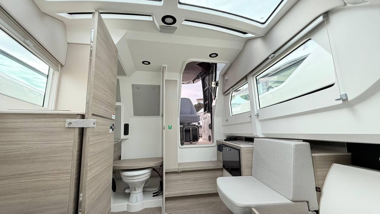This Saxdor 320 GTO model 2025 is in impeccable condition, with very few hours of use. The gray hull combined with the Florida blue upholstery creates an elegant and modern contrast, further enhanced by the synthetic teak flooring. The folding bulwarks and the dinette that can be transformed into a large sundeck make this sporty walkaround extremely versatile: perfect for fast cruising at 30 knots as well as for relaxing stops at anchor. Below deck, a forward double cabin with separate electric toilet ensures comfort and privacy. Completing the equipment is a premium audio system from bow to stern with subwoofer and an induction plate on deck. Immediately available, a must see.