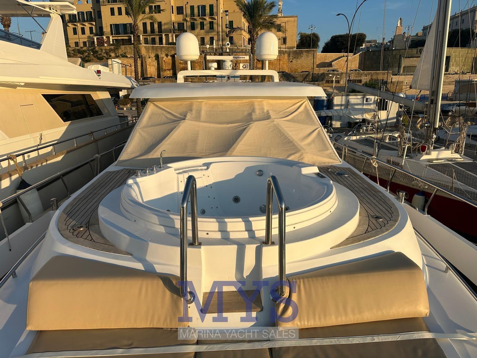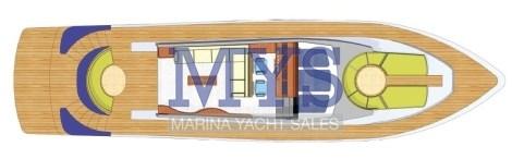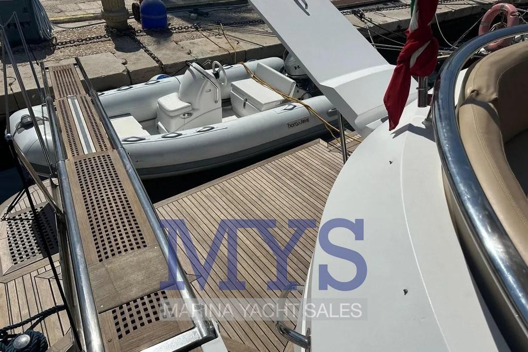 Fume/Gas Detector, Engine Alarm, Bilge Alarm, Water pressure pump, Life Raft (2024), Batteries (2025), Teak Side Decks, Battery charger (2024), Shore power cable, Guard rail, 2 Deck Shower, Directional Spotlight, Fire Extinguishing System, Anchor Chain Washdown, Washbasin in the cockpit, Courtesy Lights, 2 Underwater lights (Blu), Battery Monitor, Fenders, Gangway, Platform (Idraulica 600 Kg), Automatic Bilge Pump, Manual Bilge Pump, Teak deck, Entry door, Side door (Elettrica), Teak Cockpit, Shorepower connector, Water harbor connector system, Voltage Rectifier, Electric Windlass, swimming ladder, Stabilizers (Idraulici Vetus), cockpit table, Horn, 2 Stern Winches, Bow Winches.