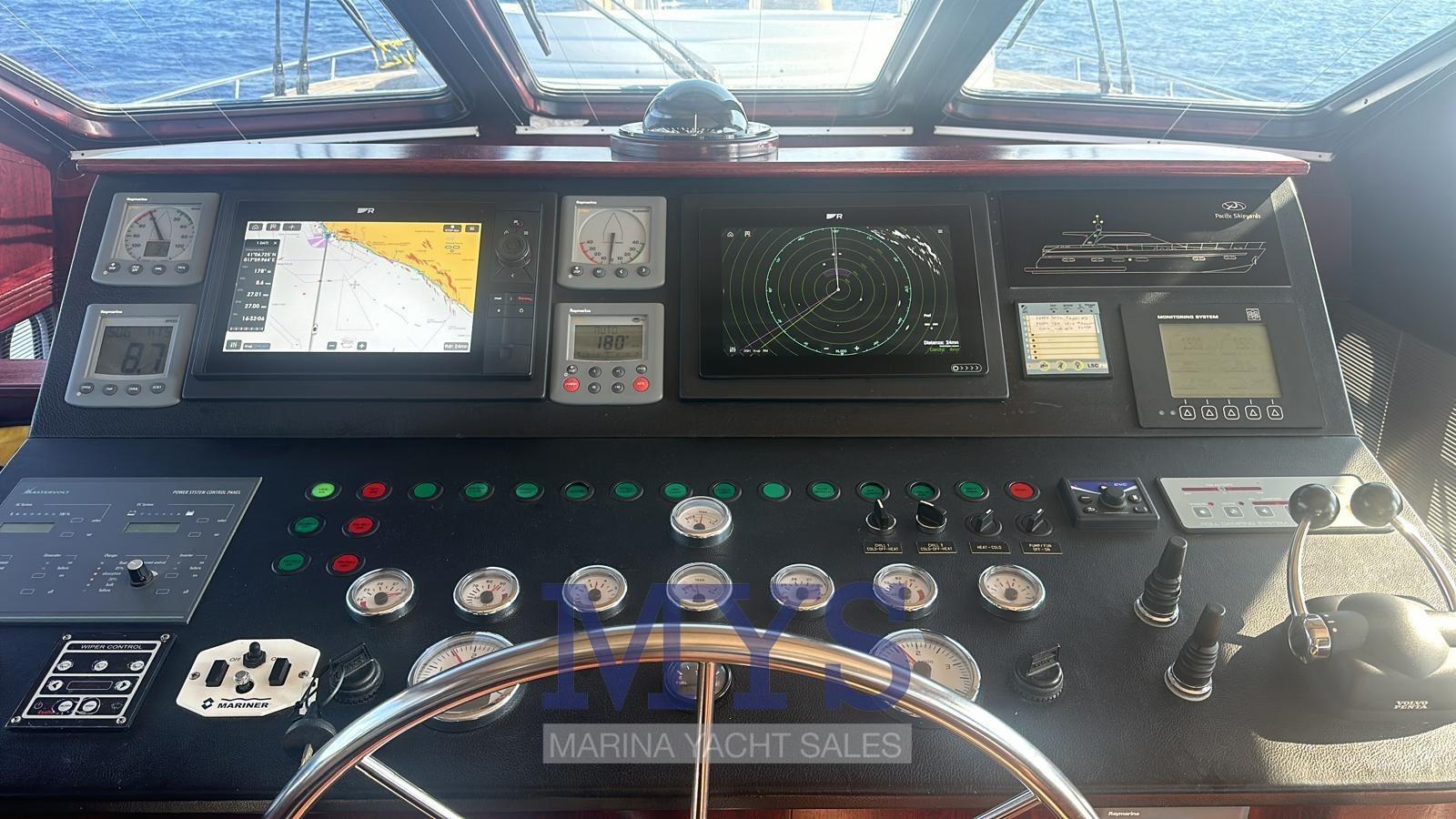 AIS (Da attivare), Rudder angle indicator, Radar Antenna (2024), Electronic engine control, On-Board Computer, Chain counter, DSC vhf, Turn indicator, Maps and guides, MeteoFax, Consumption monitor, Plotter with GPS antenna, Control panel, 2 VHF Radio, Engine Measuring Instruments.