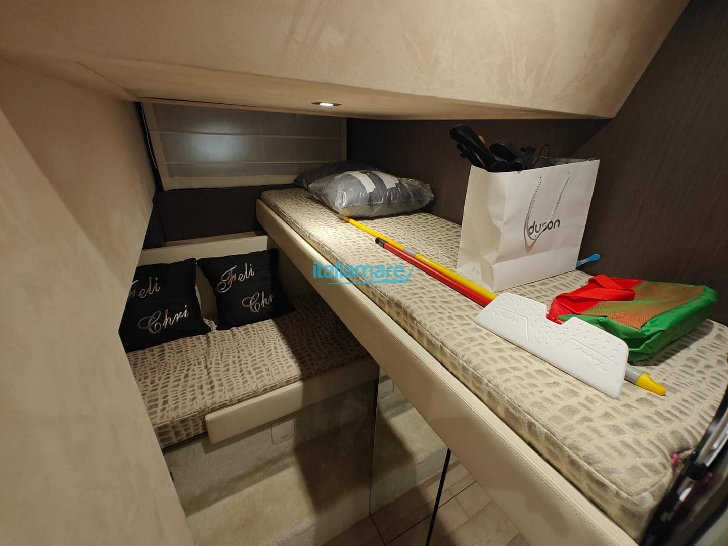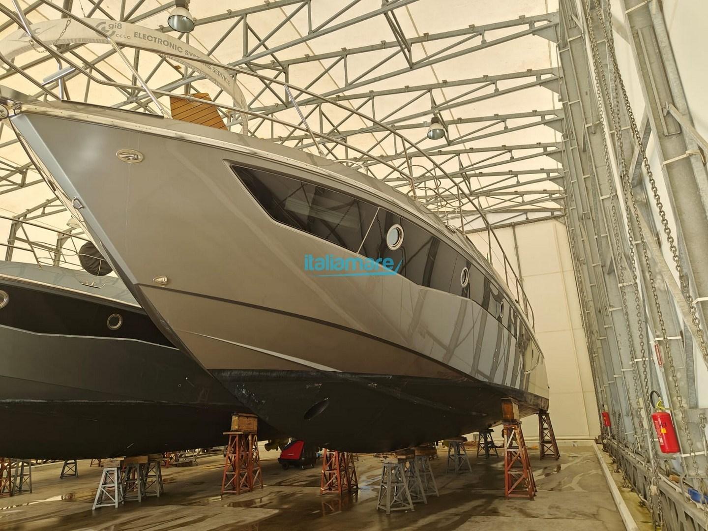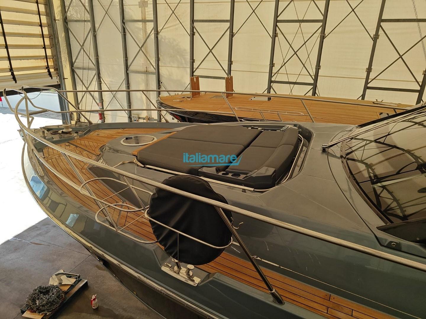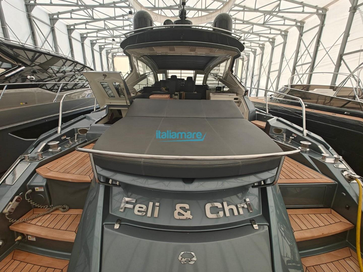 Engine Alarm, Bilge Alarm, Water pressure pump, Teak Side Decks, Special Colour (GRIGIO), Deck Shower, Electric Flaps, Tender Garage, Hard top (APRIBILE), Washbasin in the cockpit, Courtesy Lights, Underwater lights, Gangway, Platform (IDRAULICA IN TEAK), Automatic Bilge Pump, Manual Bilge Pump, Teak deck, Teak Cockpit, Shorepower connector, Water harbor connector system, Electric Windlass, swimming ladder, cockpit table.
