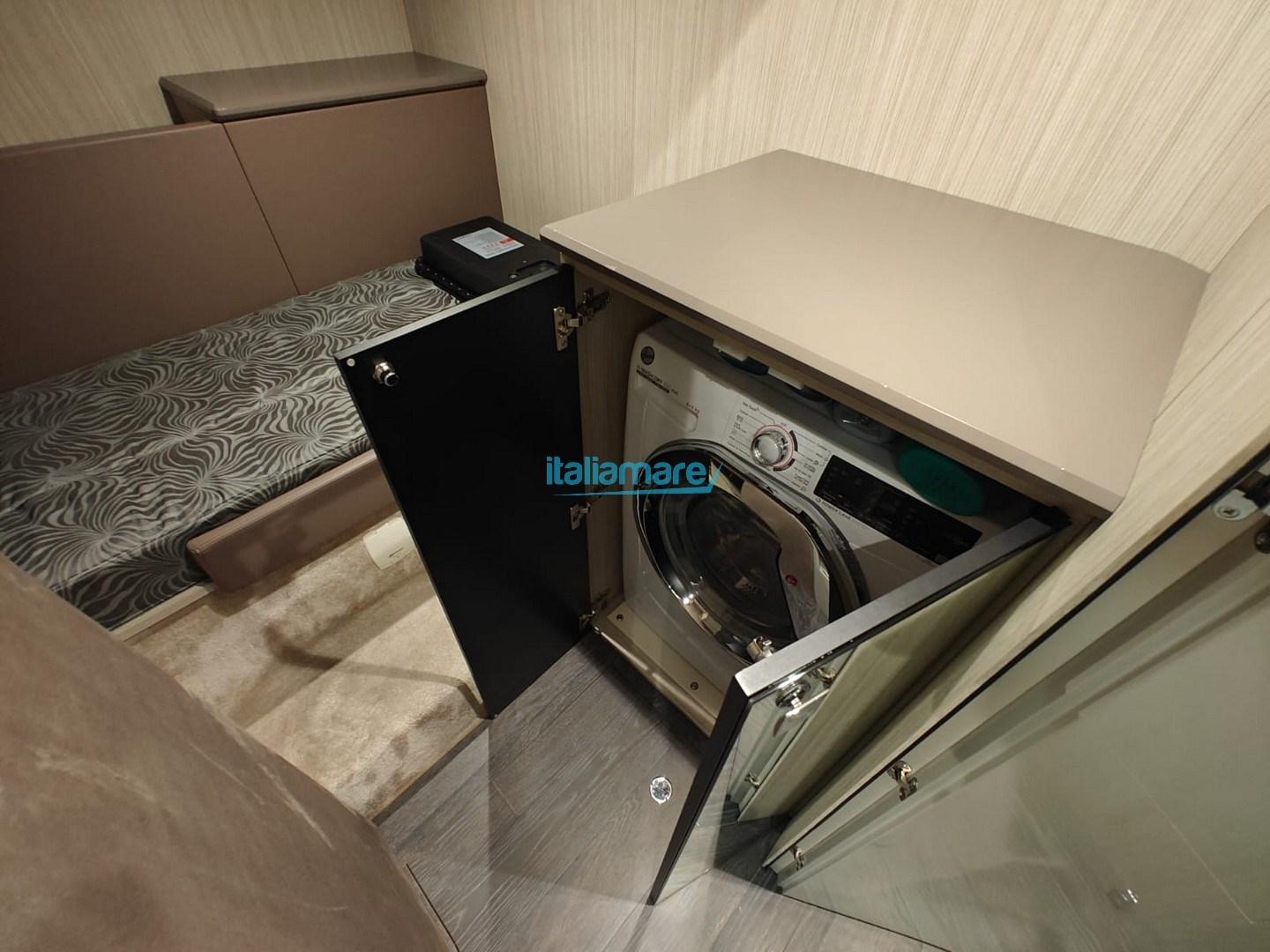 Galley, Deck Refrigerator, Washer dryer, Ceramic hot plate.