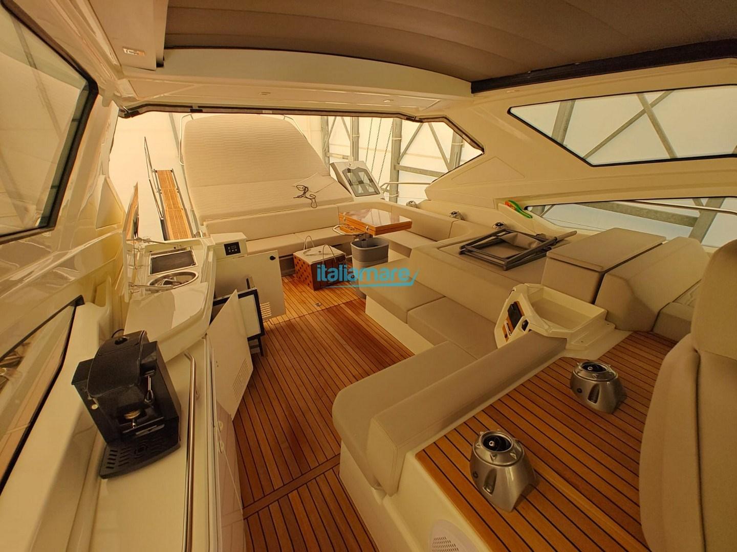 Very spacious cockpit, it is protected by the Hard Top and includes a large dinette/dining area.