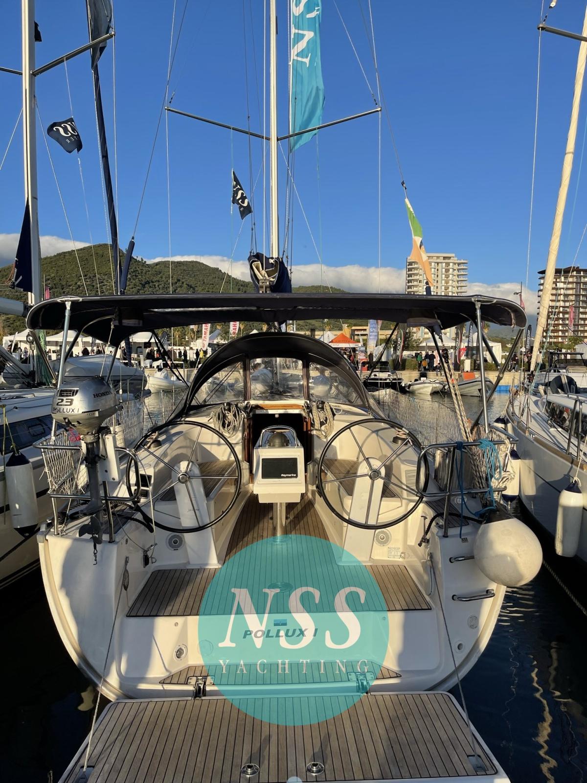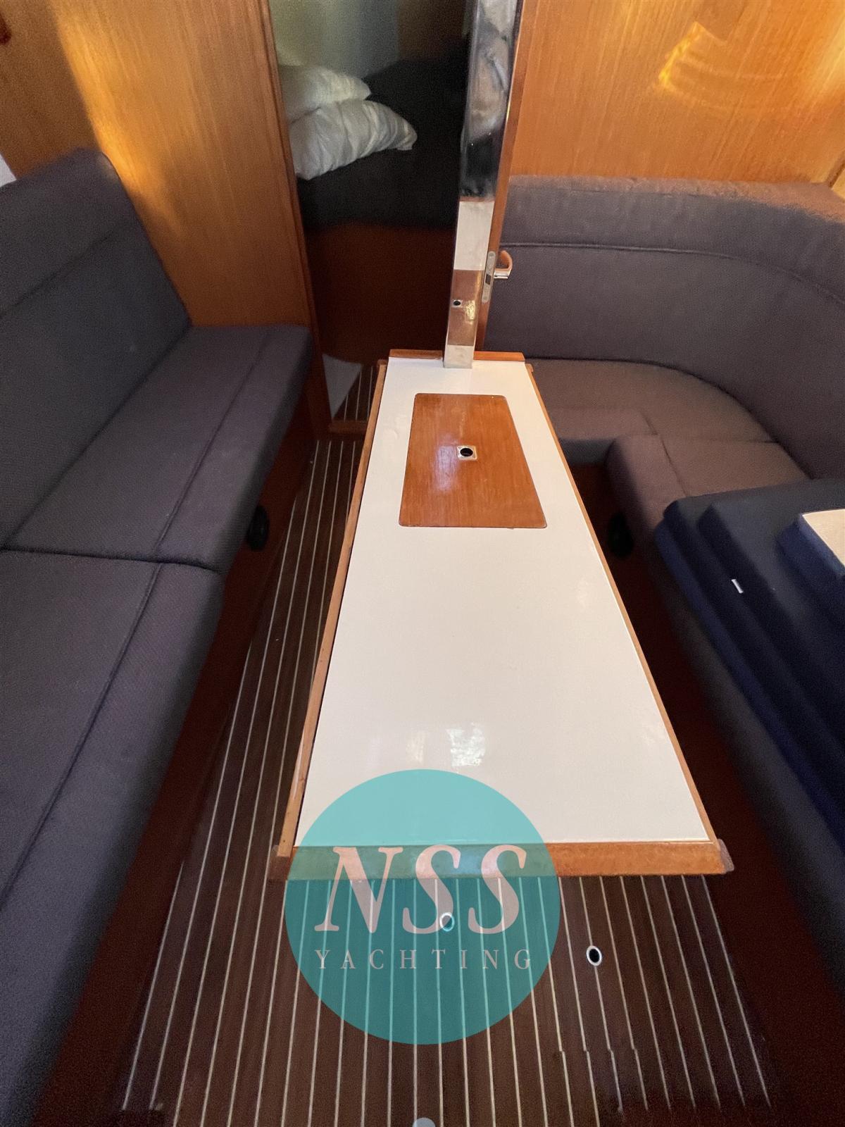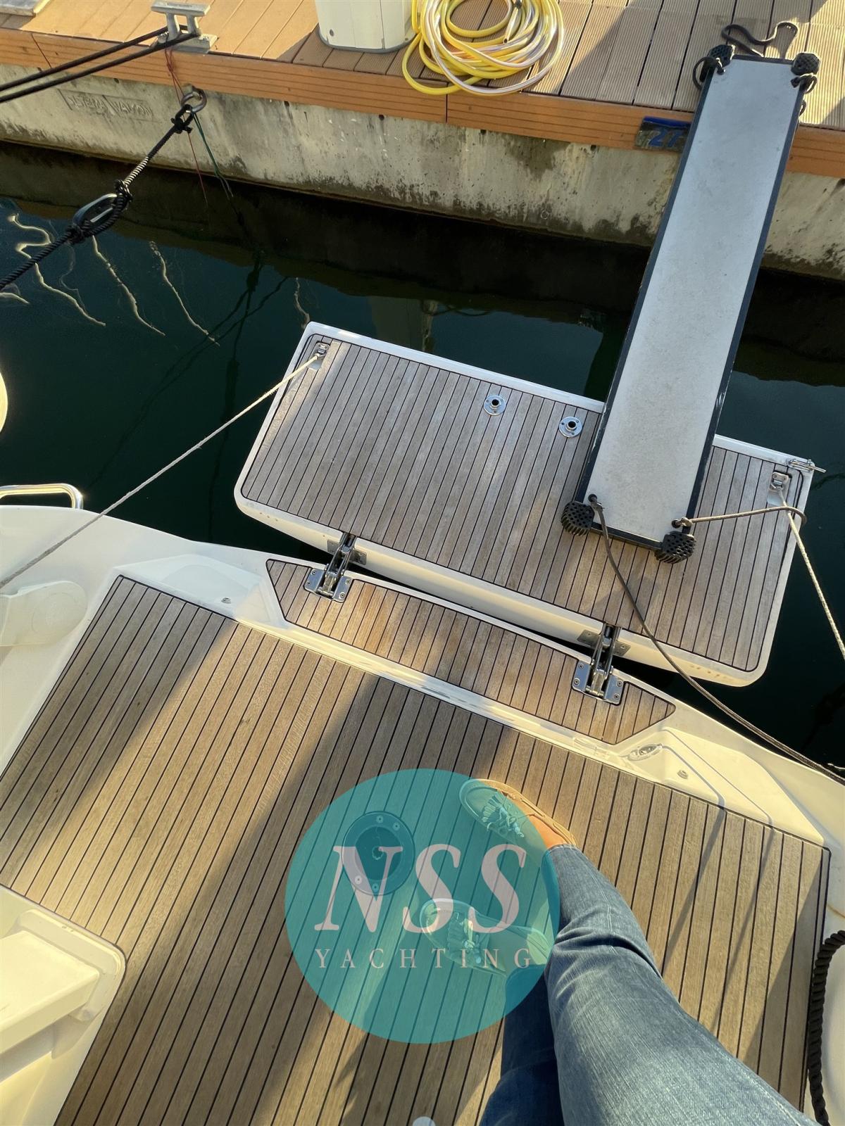 A very successful model, this cruiser is our exclusive and is in excellent condition. Three cabins, a manual bathroom, teak in the cockpit, fenced mainsail, double steering and large folding stern beach.