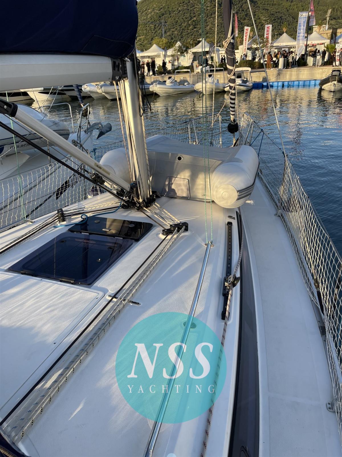 Water pressure pump, Deck Shower, Courtesy Lights, Teak Cockpit, Shorepower connector, Electric Windlass, swimming ladder, Outboard Engine Support Bracket, cockpit table, Windex.