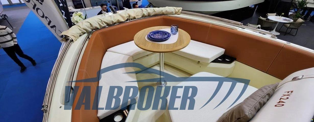 FX 240 offers its guests elegance and versatility, thanks to the bow area that can accommodate a comfortable sofa leaning against the bulwark, or remain free for the most passionate fishermen. The console and driver's seat are designed in detail to be totally integrated and usable.