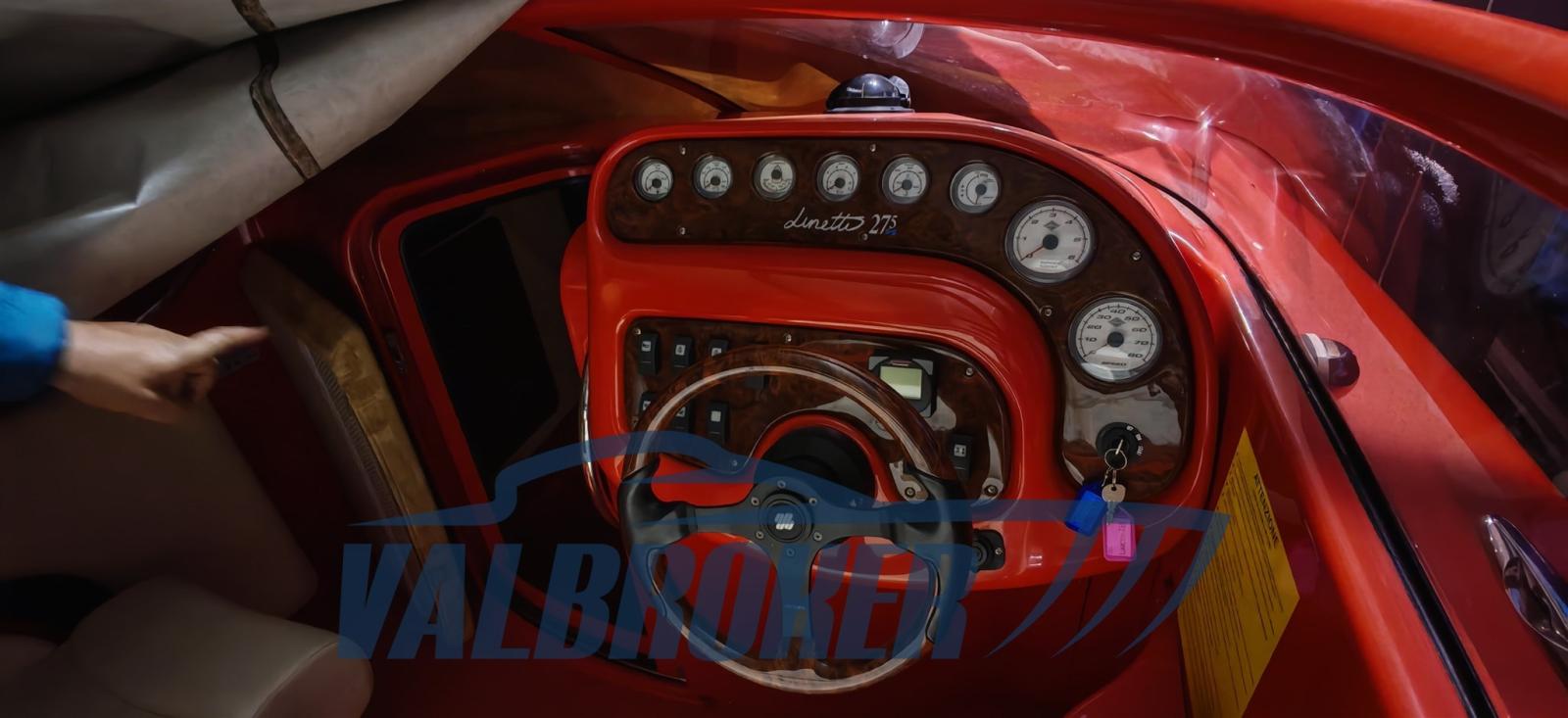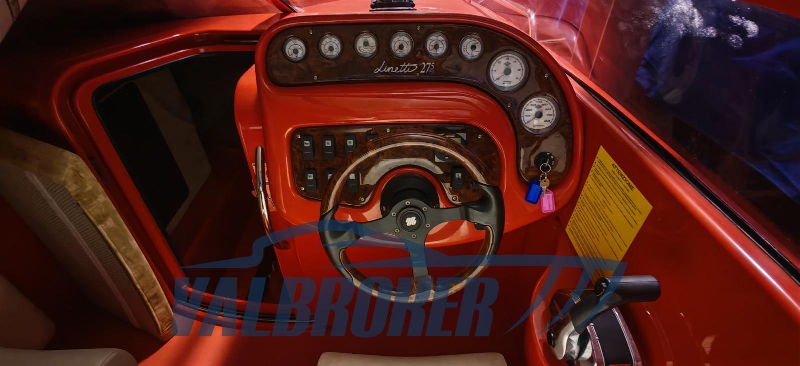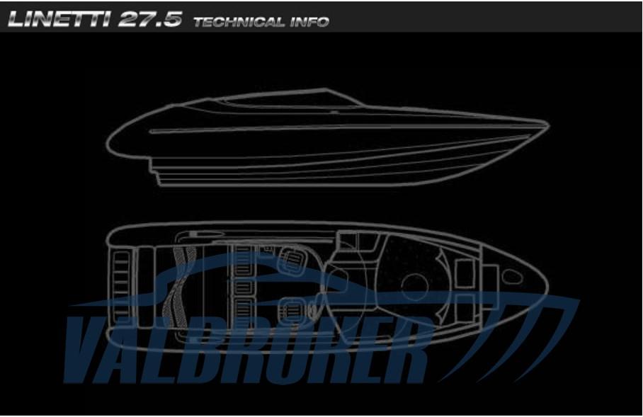 The style of the Linetti is unmistakable: dynamic and elongated shape of the hull. It can reach high speeds while giving a feeling of extreme solidity. Forward cabin with bathroom. Engine 1x 420 Mercruiser 496 MAG HO.
