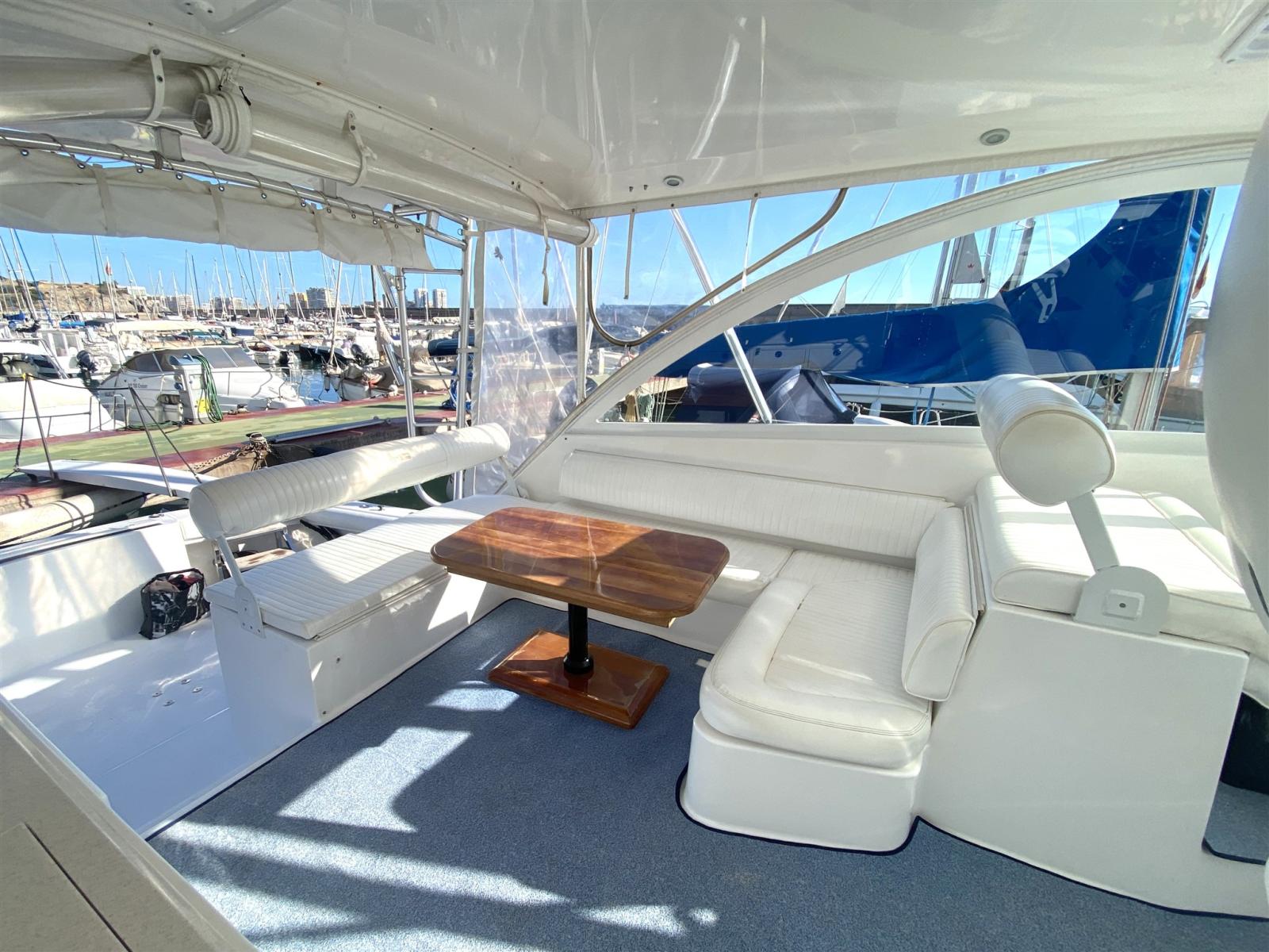 2 Alternator, Water pressure pump, Draining System, Shore power cable, Deck Shower, Directional Spotlight, Flaps Indicators, Washbasin in the cockpit, Battery Monitor, Deck Wash Pump, Seawater Pump, Shorepower connector, swimming ladder, cockpit table.