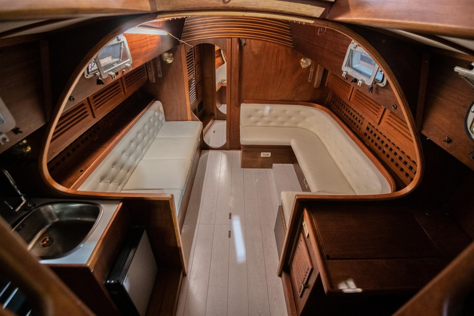 Engine Alarm, Water pressure pump (Nuovo), 2 Batteries (Nuove), Teak Side Decks (nuovo), Special Colour (Fiancate riverniciate bianche), Platform (Spiaggetta bagno a poppa in acciaio e teack), Electric Bilge Pump (Nuova), Manual Bilge Pump, Teak Cockpit (Nuovo), Shorepower connector, Electric Windlass (Nuovo), Strand rigging, 4 Winch (due x genova in pozzetto e 2 in tuga x drizze).