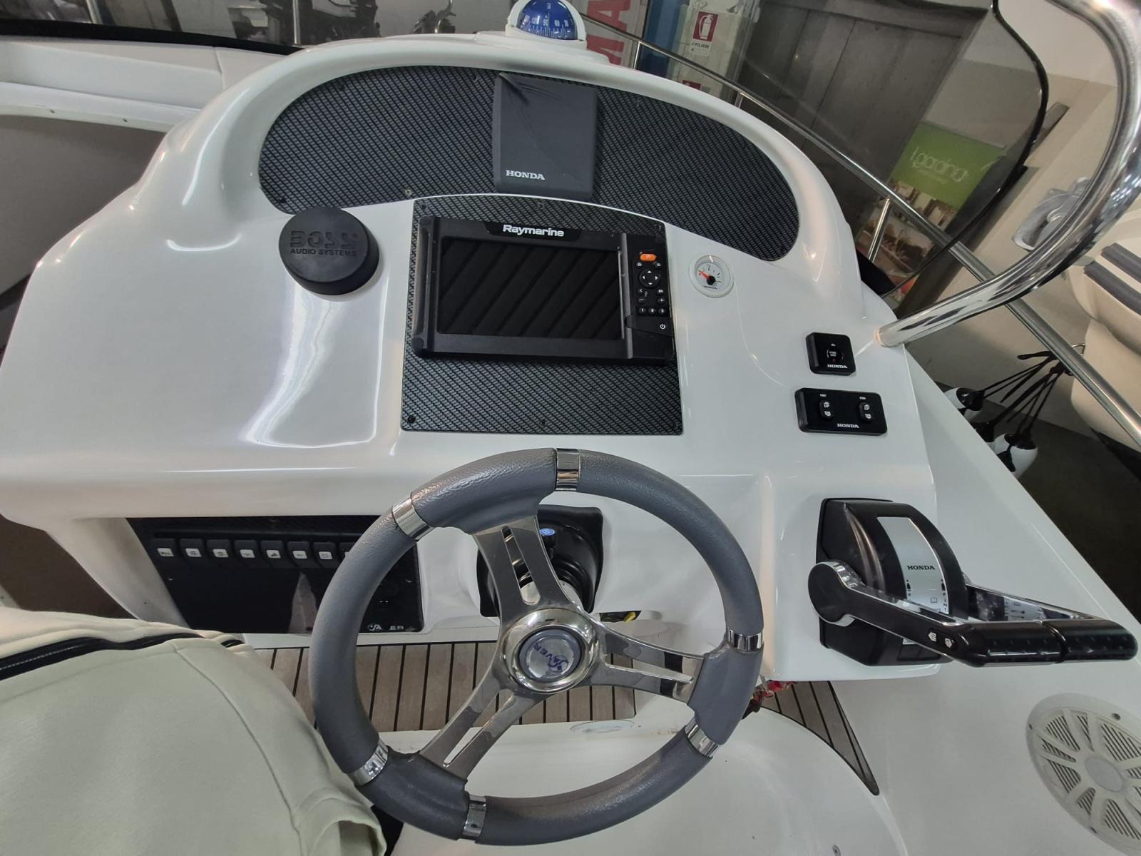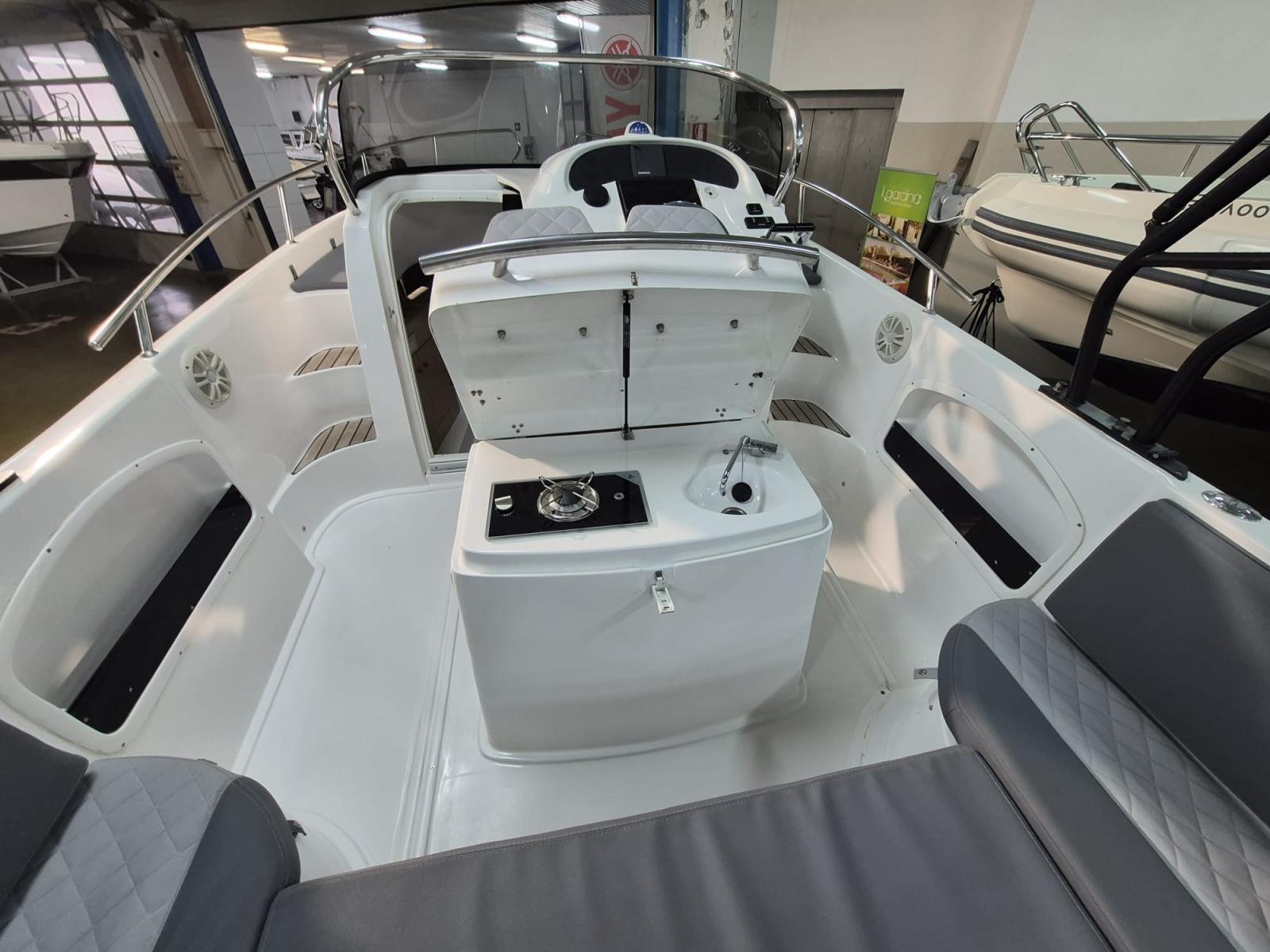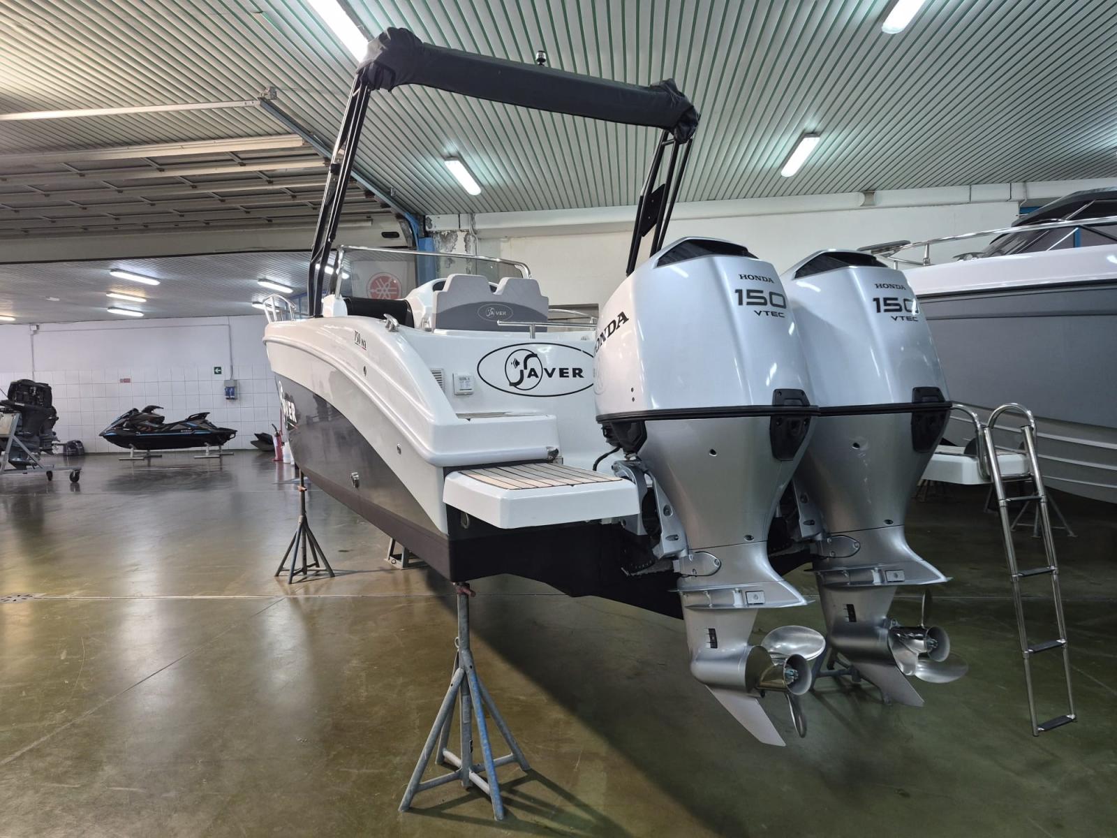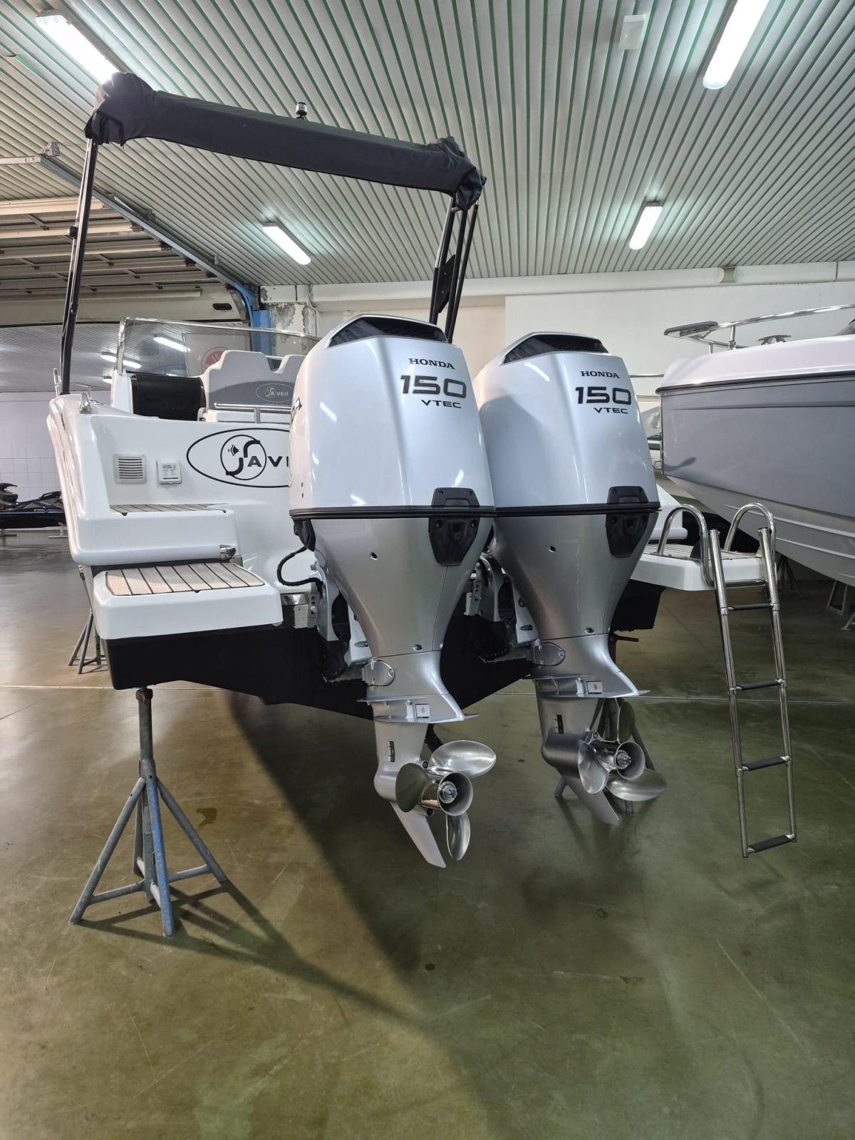 Stereo, electric anchor, fridge, cushions complete with stern sundeck extension, shore charger, stern platforms, Raymarine GPS. Dual Honda BF150 engine electronic throttle.