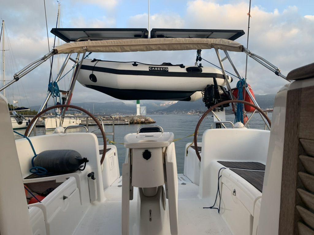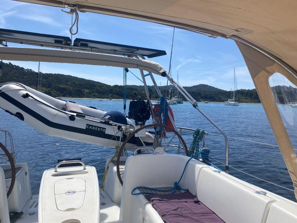 Energy autonomous with its stainless steel arch and 370w solar panels, standing rigging (2023), triradial mainsail (2023), it is ready for a MED Tour.