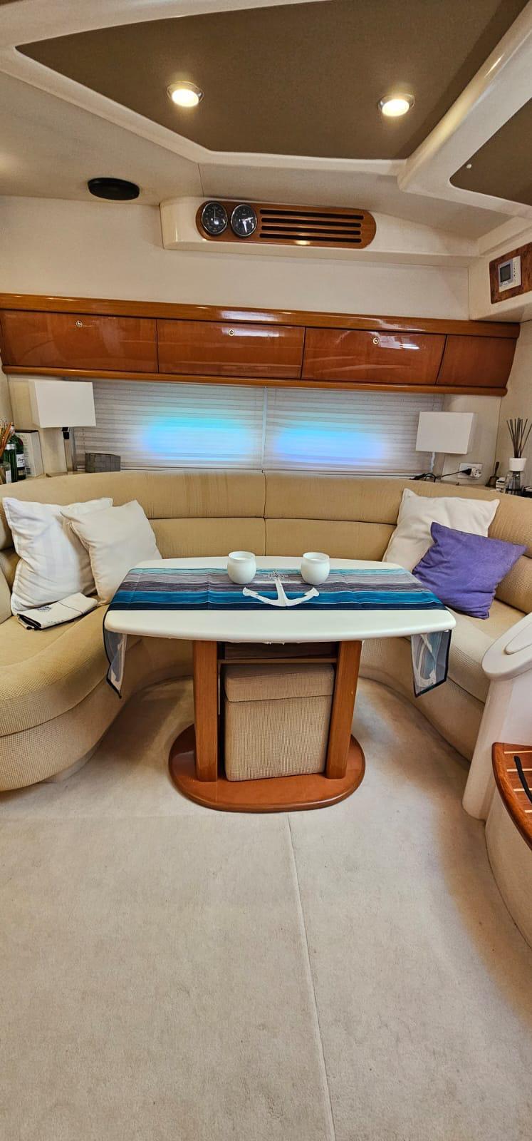 Layout features 2 air-conditioned cabins with en-suite bathrooms, a fully equipped galley, teak cockpit and swim platform, and an OpacMare hydraulic gangway in impeccable condition!